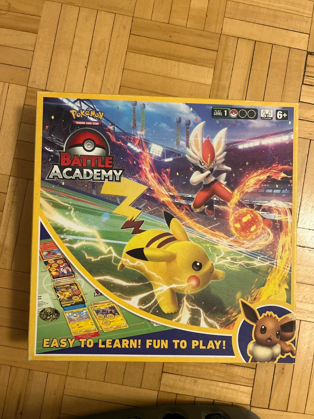 This Pokemon Trading Card Game Battle Academy is for ages 6+ and two players. It's easy to learn and fun to play! Includes starter decks and guides for new players.