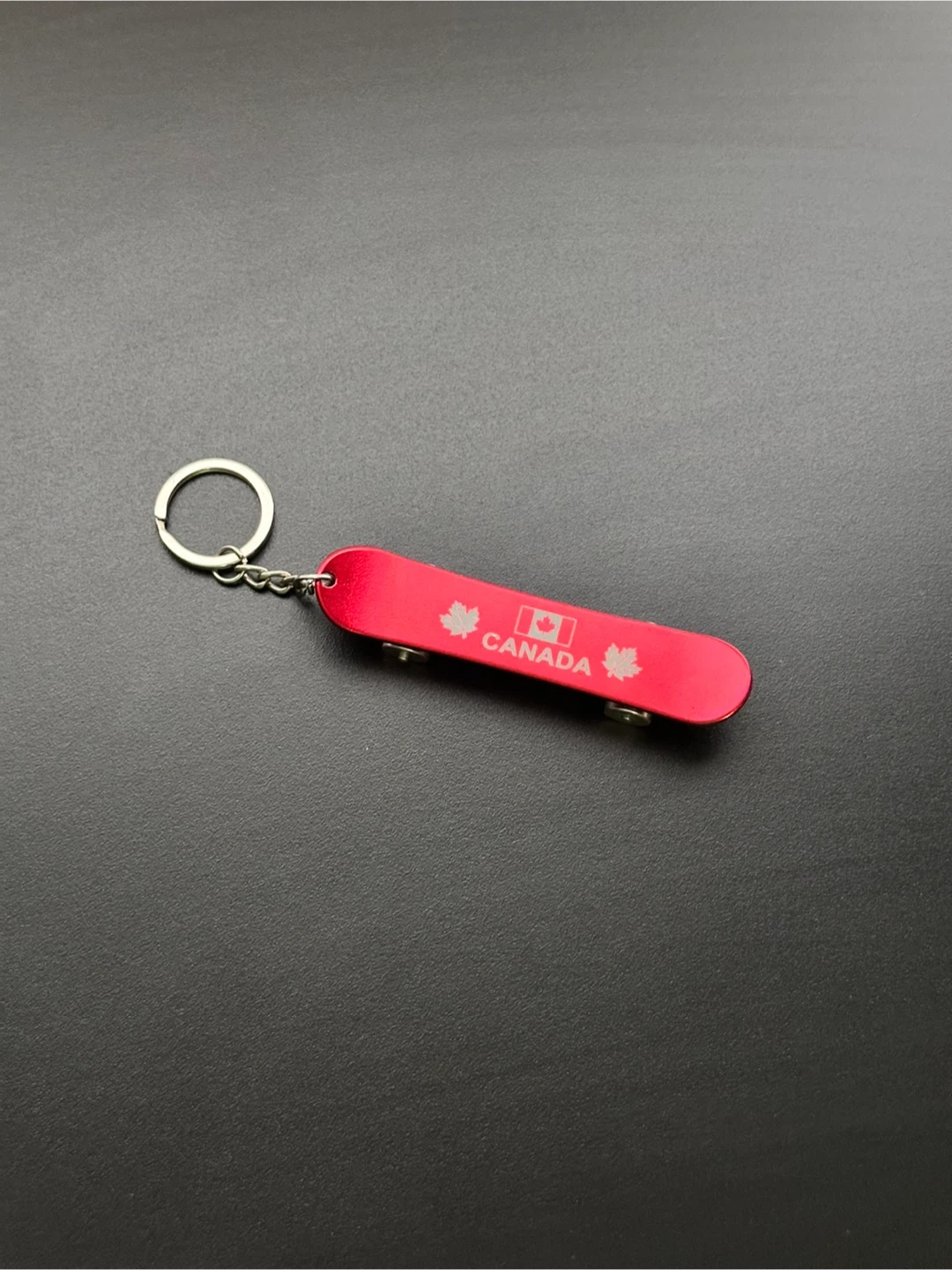 Selling a cute red skateboard keychain with a Canadian flag and maple leaf design! It's in great condition and perfect for adding a touch of Canadian flair to your keys or bag.
