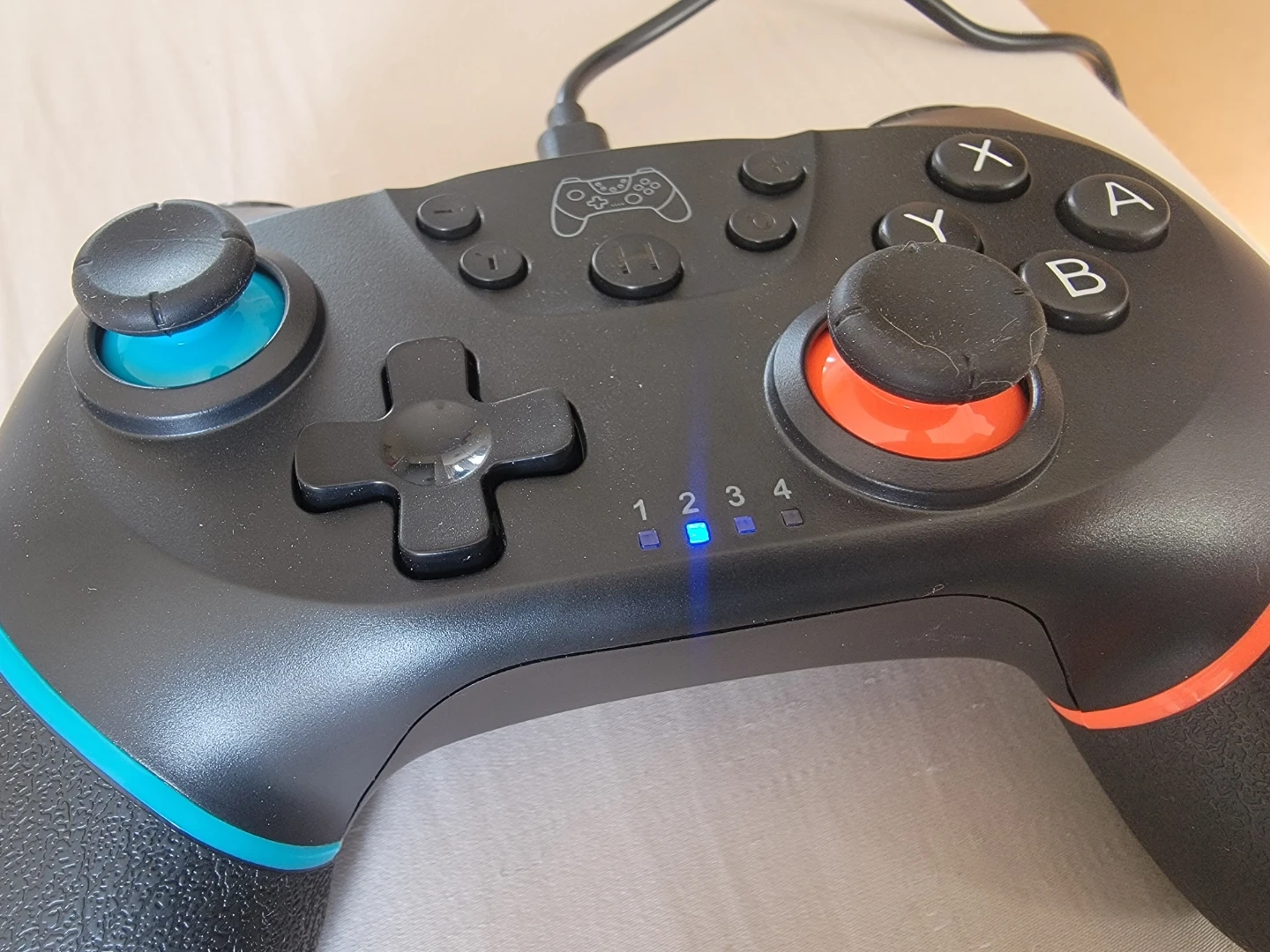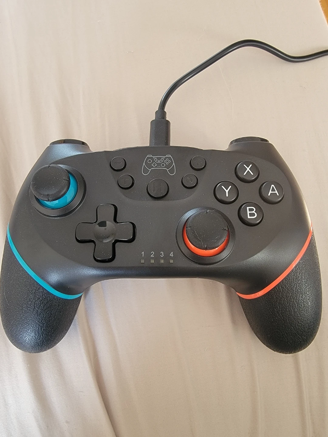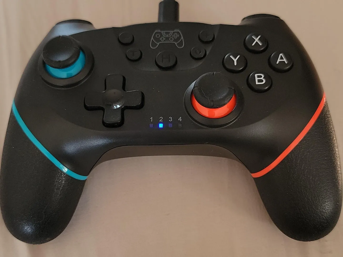 Wired controller for gaming. Features analogue sticks, D-pad, and standard buttons. Input is DC 5V 550mA. This controller connects via USB.