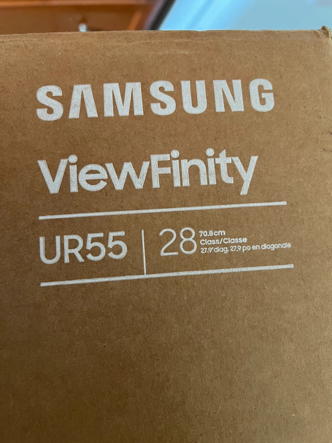This is a Samsung ViewFinity UR55 monitor. It features a 28-inch UHD display. The screen size is 70.8cm class.