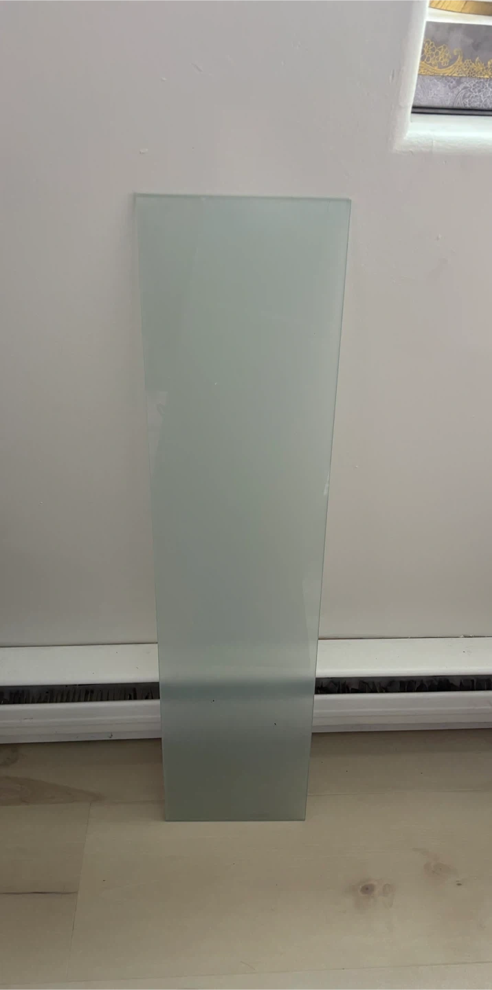 Frosted glass panel. Glass material. It's a flat piece of glass. This would be useful as a replacement piece or for a DIY project.