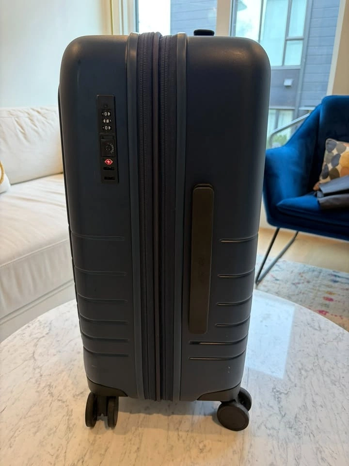 Outfitted with a high-quality polycarbonate shell, the Carry-On Pro Plus is dent-resistant, impact-friendly and virtually unbreakable. It features an ultra-sturdy telescopic handle, TSA-Accepted lock, whisper-quiet wheels, vegan leather details, and all-premium materials. When you’re not travelling, the Carry-On Pro Plus suitcase nests inside any of our Check-In sizes for easy storage.