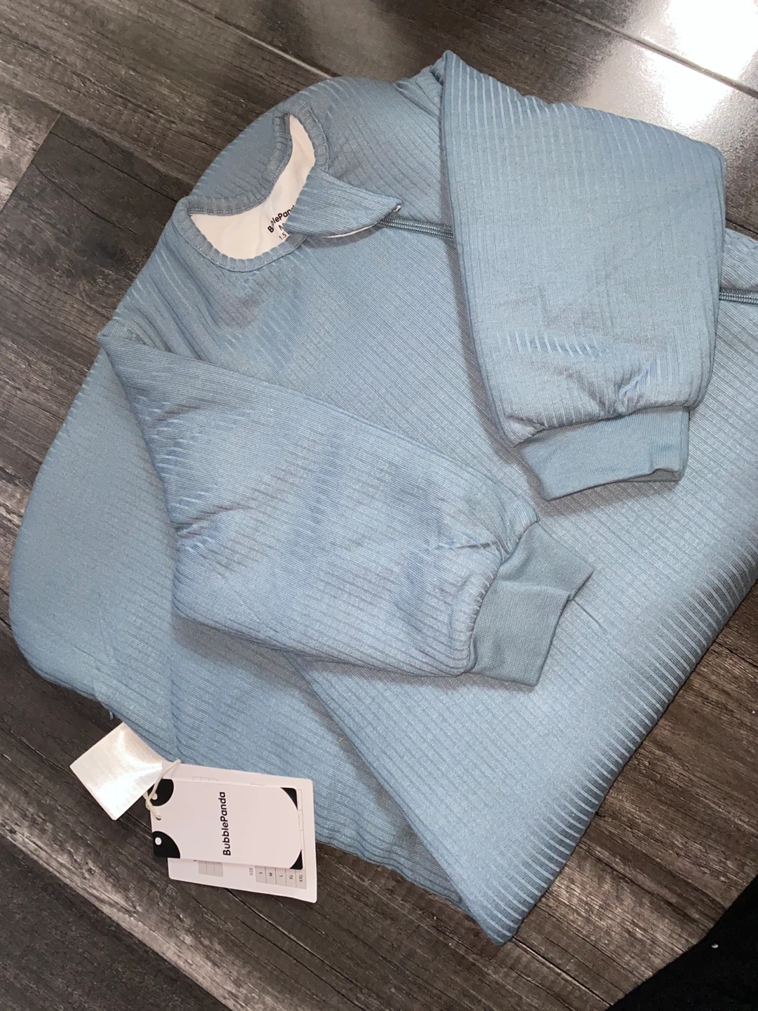 I'm selling a Bubble Panda Bamboo Rayon Sleep Sack, perfect for newborns aged 0-6 months! It has long sleeves to keep your little one cozy. This sleep sack is in brand new condition with tag