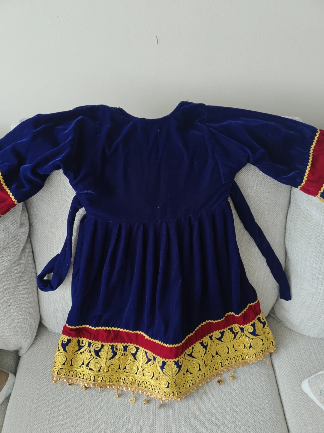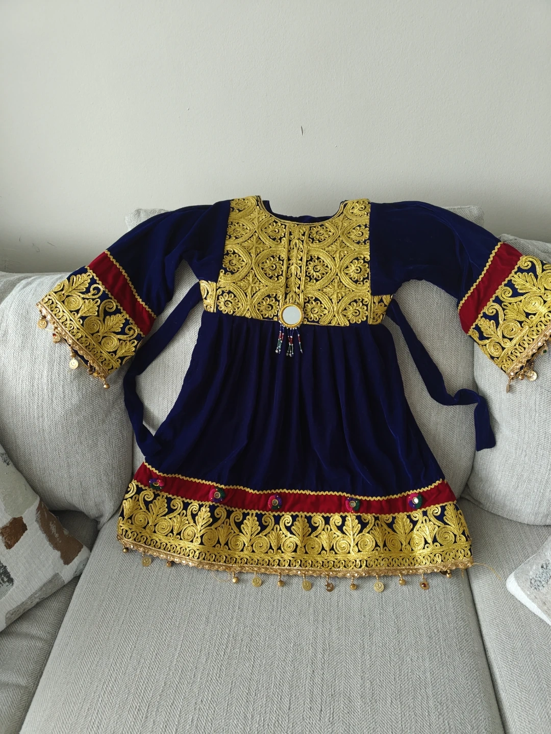 Girls Embroidered Velvet Afghan Dress with Pants and Scarf