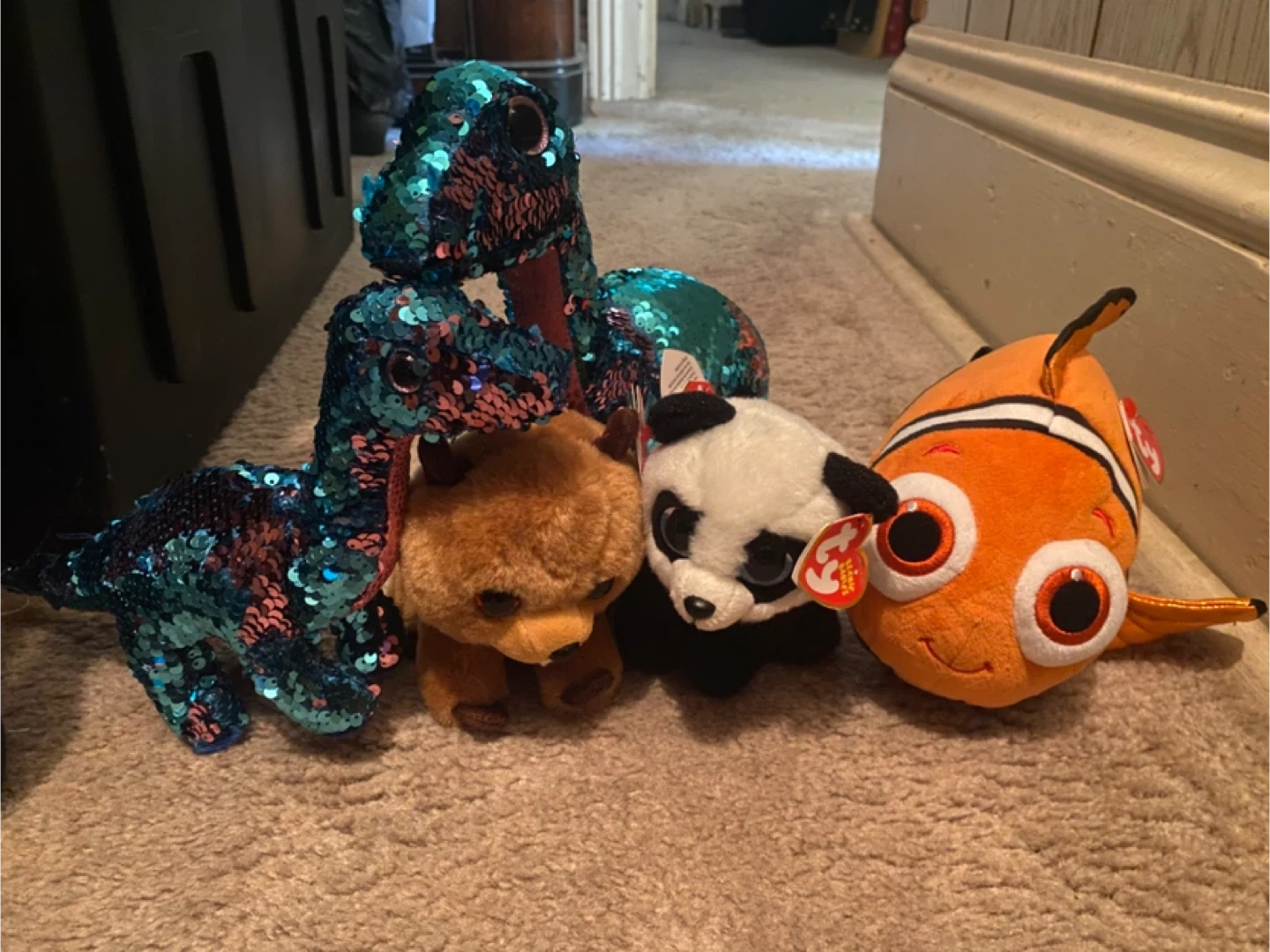 Selling a collection of Ty Beanie Boo plush toys! There's a sequined dinosaur, a brown bear, a panda, and Nemo. They're all in great shape and ready for a new home Pick up on Kennedy Road between 19th Avenue and Stouffville Road