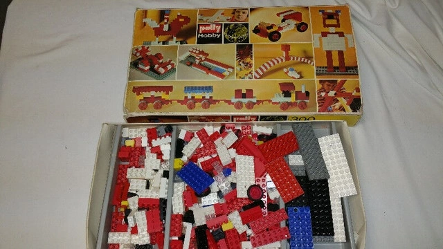 Up for sale is a vintage Polly Hobby International building block kit no. 300/160 (pictured). Made in Germany. This item is in its original box. It has 409 pieces including doors, windows, wheels, tires and much more. Overall condition: USED. The item may have some signs of cosmetic wear, but is fully operational and functions as intended. Nice condition for its age. See pictures for more details. Sold as is, may need cleaning. There may be minor factory imperfections & minor surface scratches.