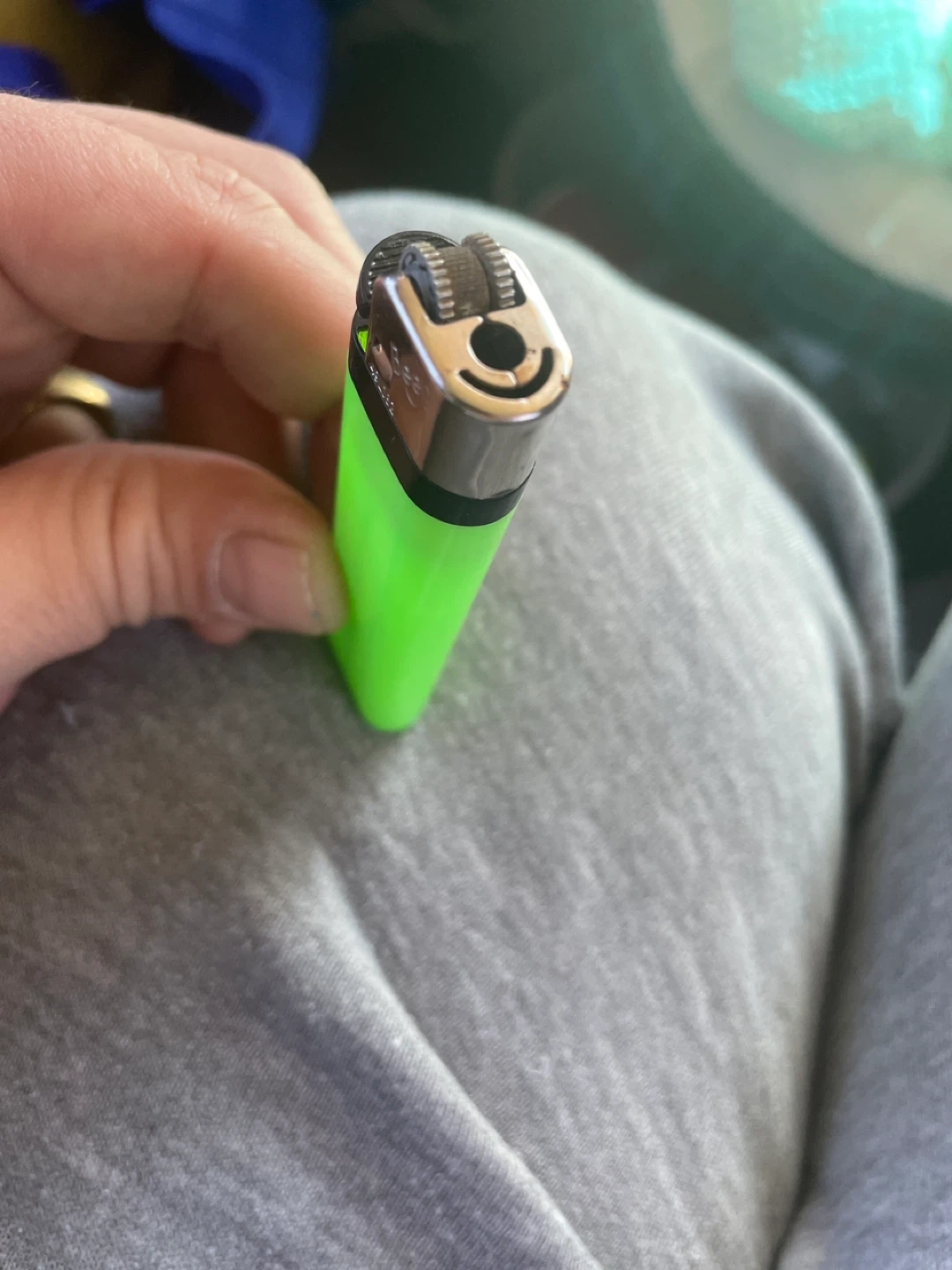 Standard size Bic lighter in a bright neon green colour. It's a disposable lighter.