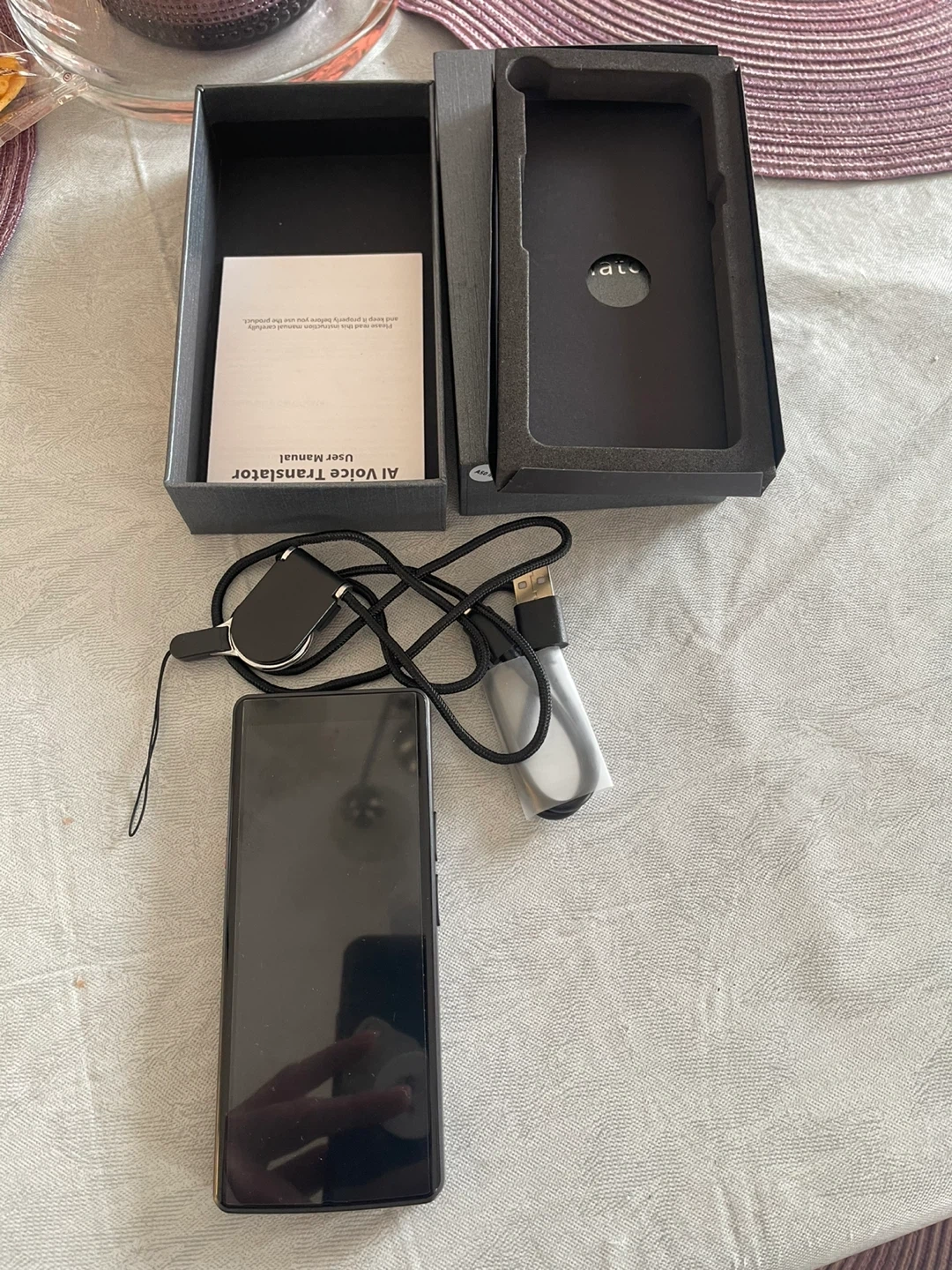 Selling a brand new AI Translator, still in its original box! It comes with all the original components including the translator device, user manual, and charger. This translator is lightweight and portable, making it easy to carry around. Perfect for travel or learning new languages!