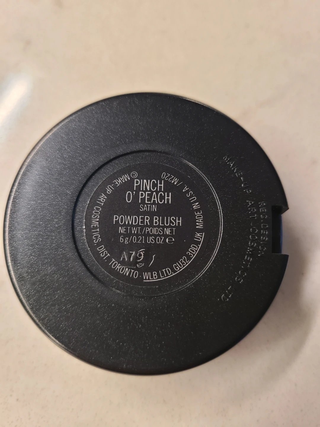 MAC powder blush in the shade Pinch O' Peach. It's a satin finish and comes in a 6g / 0.21 US oz size. Perfect for adding a pop of colour to your cheeks!