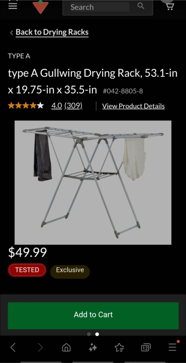 Selling a Type A Gullwing Drying Rack. It's in great shape and super handy for drying clothes indoors. The dimensions are 53.1 inches x 19.75 inches x 35.5 inches. Originally bought for $49.99