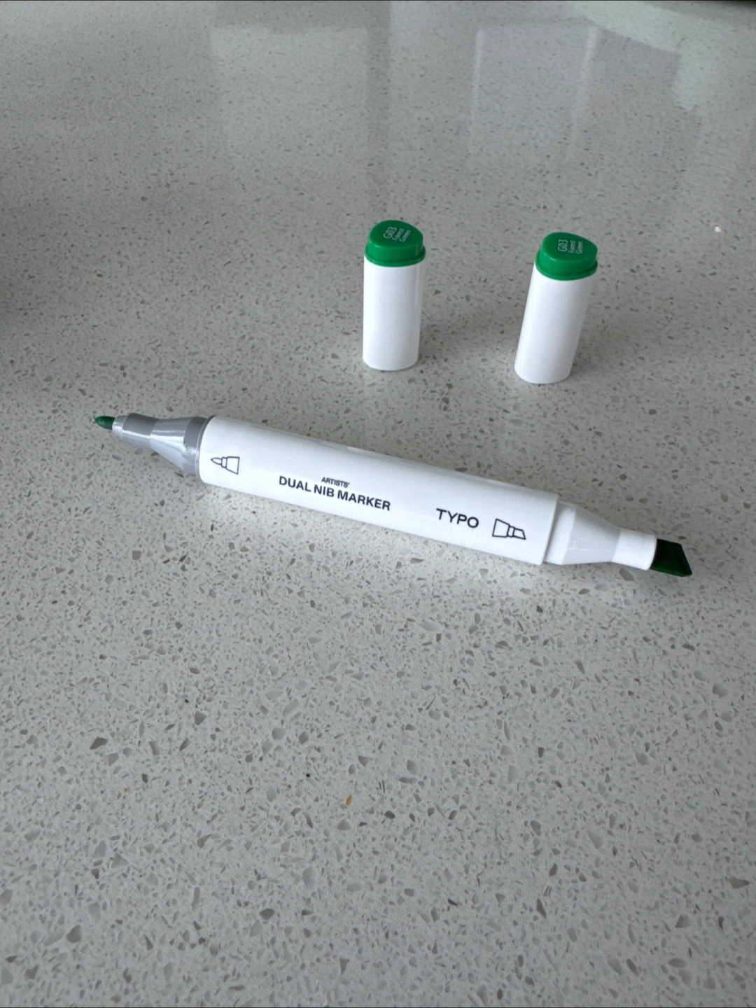 Selling a set of 12 Typo Artist Dual Nib Markers! These markers are perfect for any artist or hobbyist looking to add some colour to their creations. The set comes with a variety of colours, including Scarlet, Green Blue, Blue, Peacock Green, and more! The dual nib design allows for both fine detail work and broader strokes. Comes in a convenient storage case to keep your markers organized and in great condition