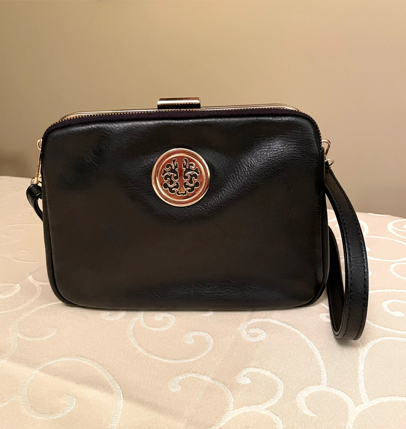 Womens Gold Accented Black Shoulder and Crossbody Handbag π