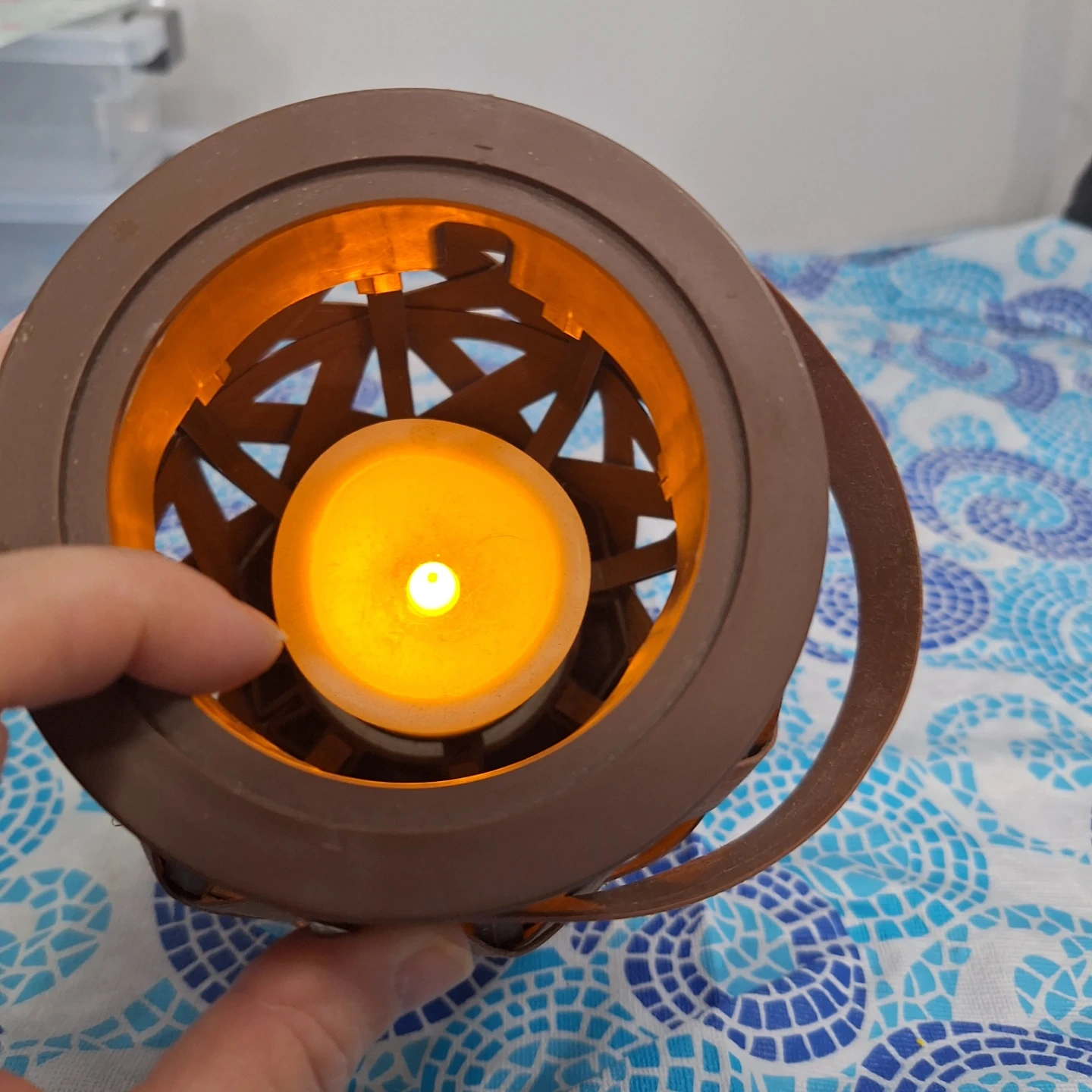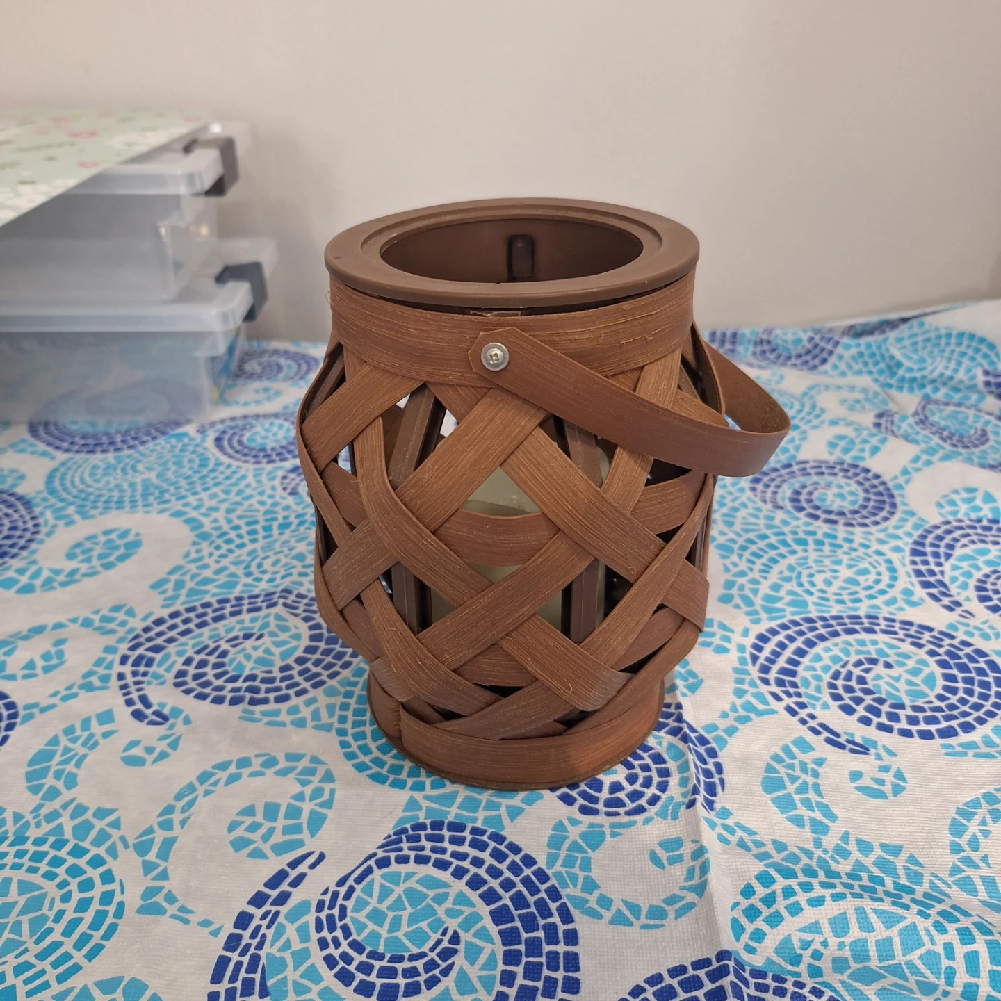 Brown Woven Lantern with LED Candle