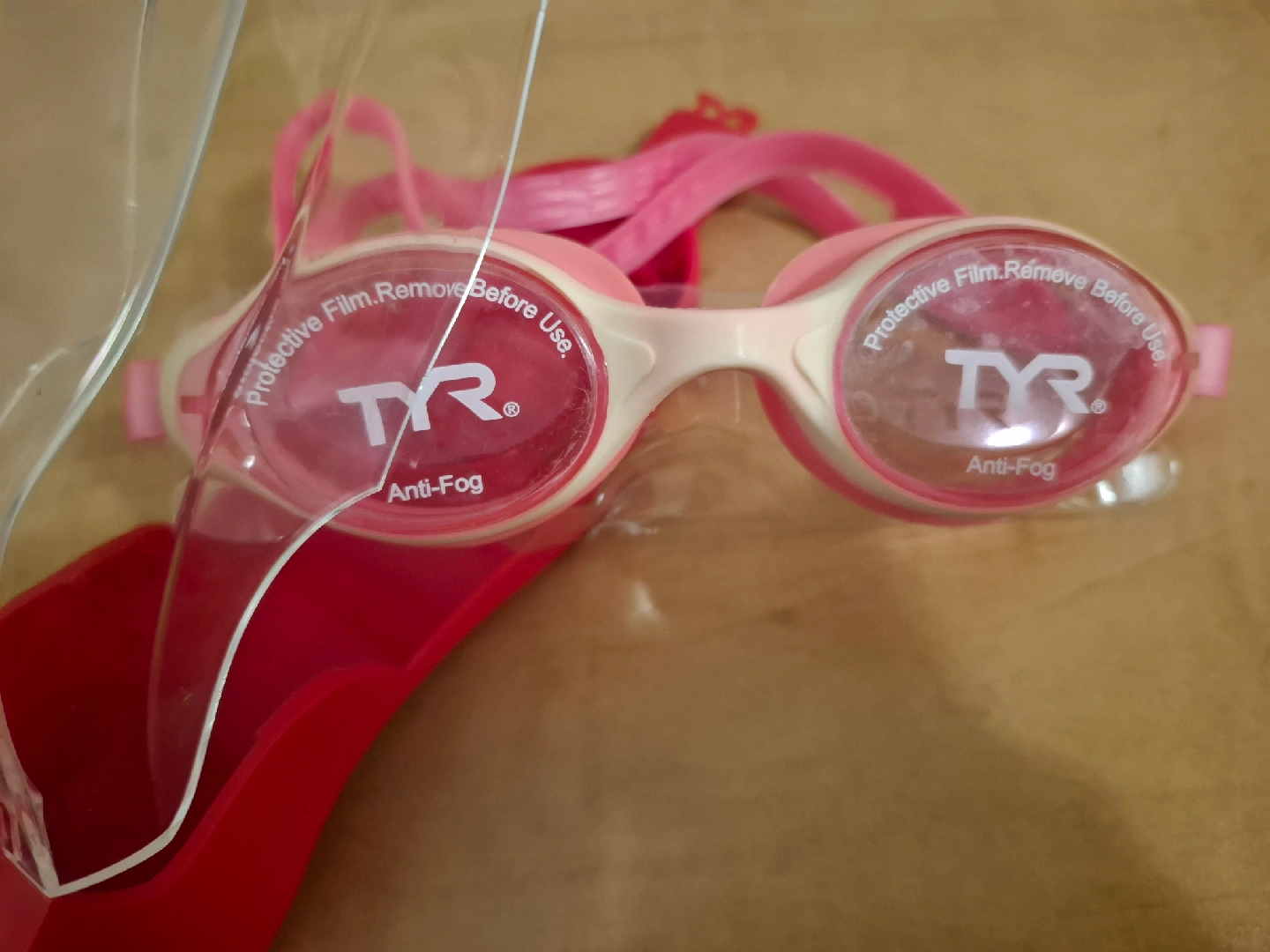 Selling a pair of TYR swim goggles in pink! They are anti-fog and come with a protective film on the lenses. Perfect for your next swim!