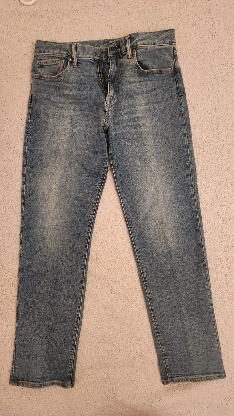 These are Gap straight fit jeans in a size 33 waist and 32 inseam. Made from durable denim. Great for everyday wear!