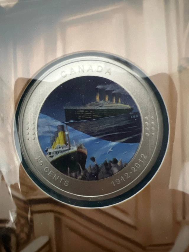 Own a piece of history with this commemorative 25-cent coin from the Royal Canadian Mint, marking the 100th anniversary of the Titanic. The coin is in new condition, still sealed in its original packaging, and comes with a beautifully designed commemorative book telling the story of the Titanic. A must-have for any coin collector or history buff. Asking $25. If the ad is still up, then the item is still available.