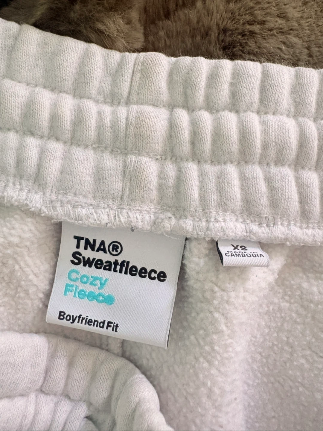 These Tna sweatpants are made from their cozy fleece fabric. They're a boyfriend fit and come in a size XS.