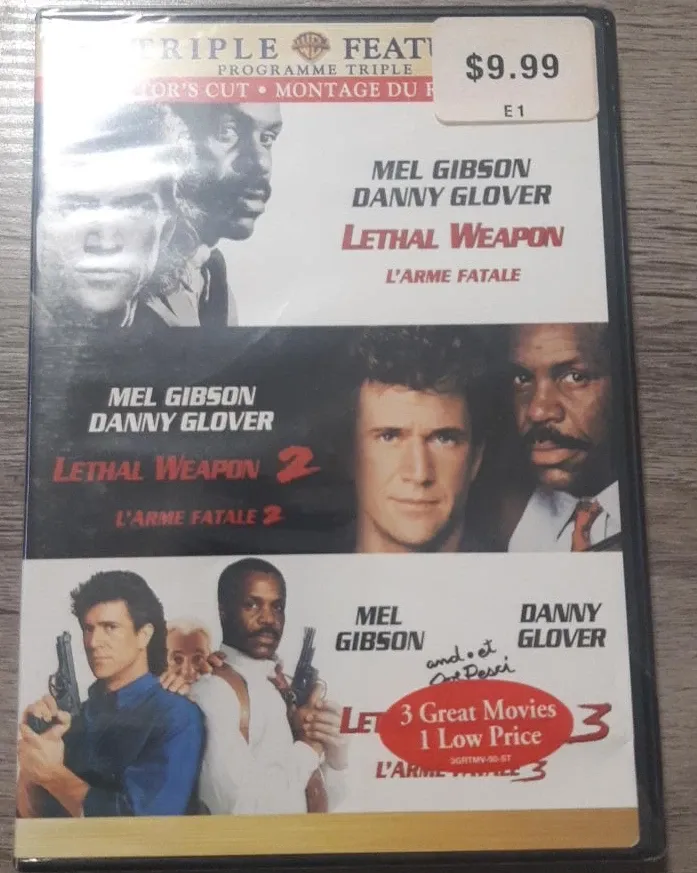 This is a triple feature DVD set including Lethal Weapon, Lethal Weapon 2, and Lethal Weapon 3. It's a director's cut with English and French titles. Three great movies for one low price!