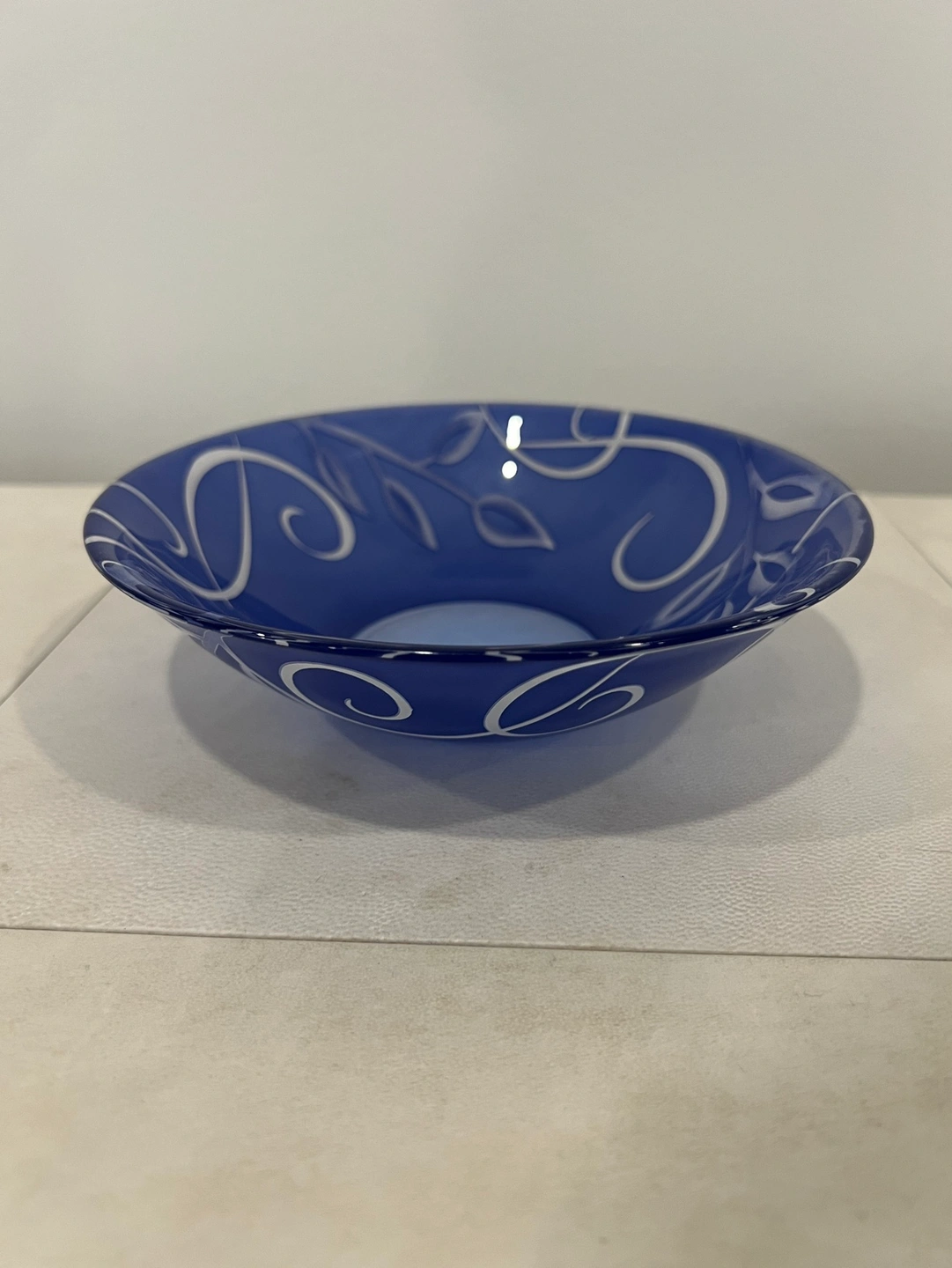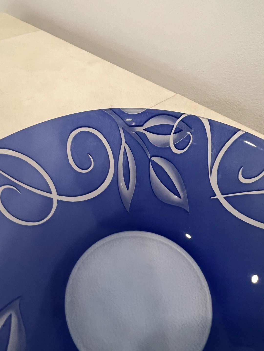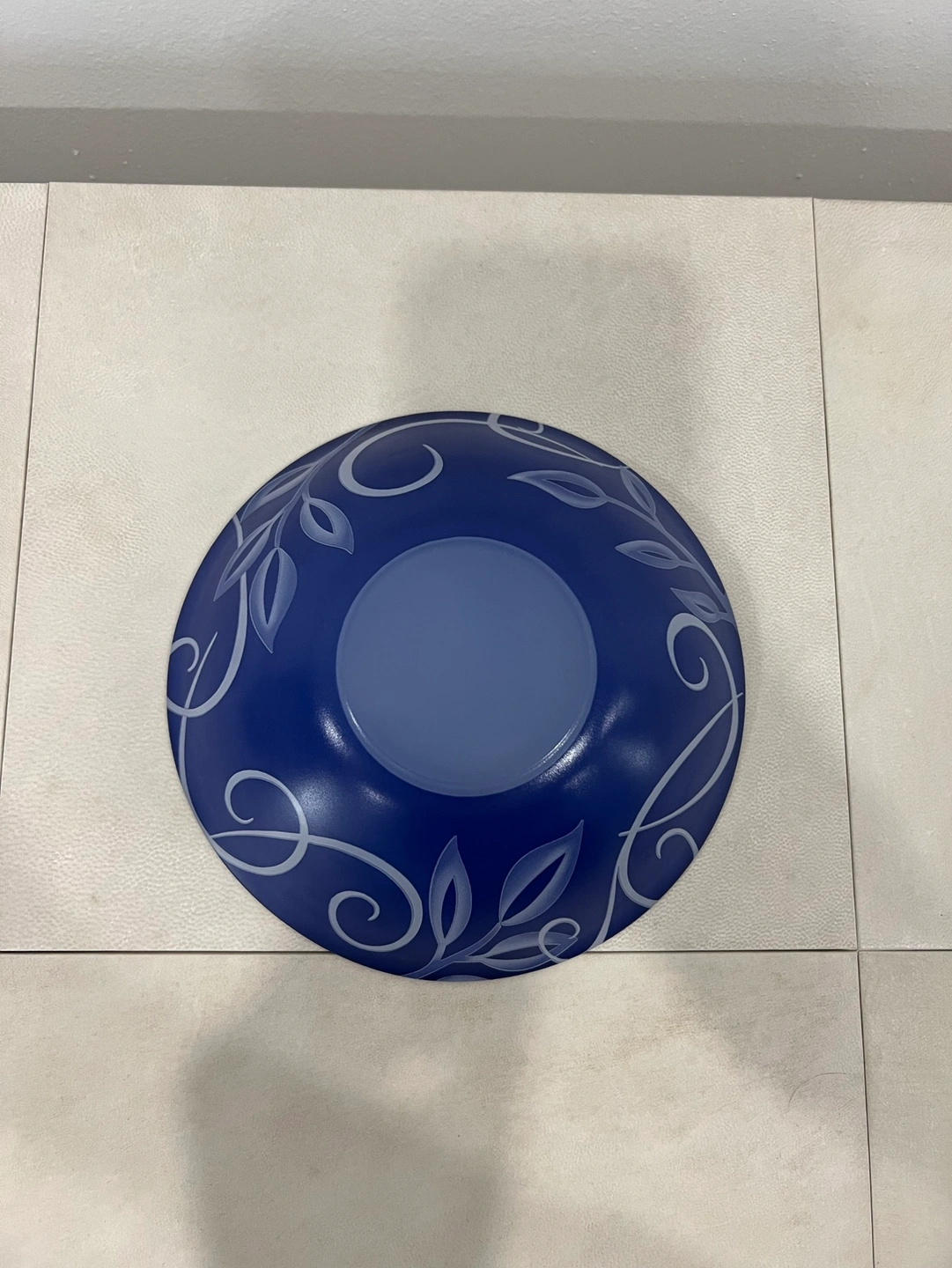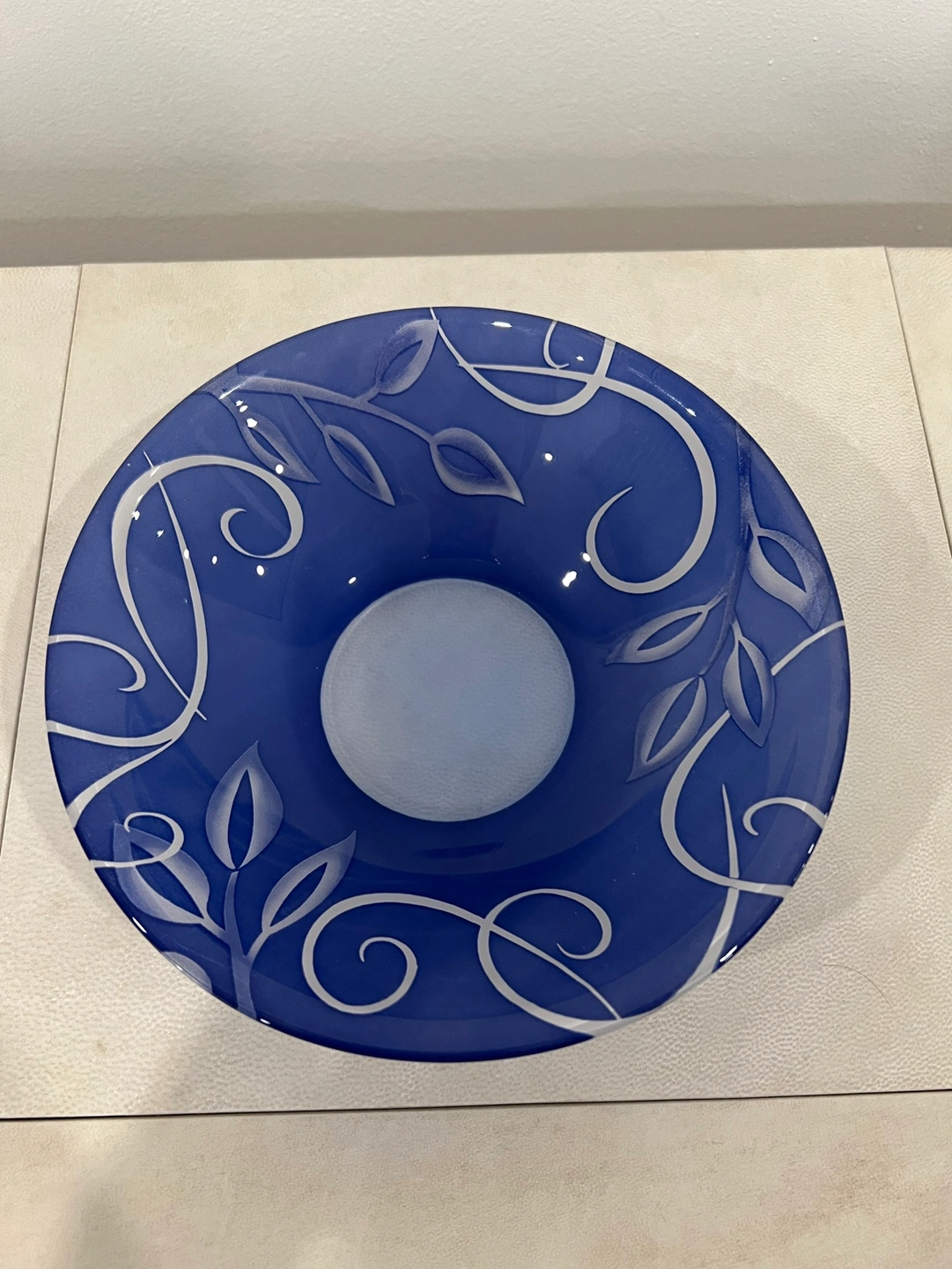 Eaton deep blue light floral leaf hand crafted bowls. These bowls are a beautiful edition to your home, they are perfect for using as a desert bowl, for soups, cereal or appetizers and will be sure to impress your guests! Also, they would make a great gift as a housewarming, wedding, or birthday!