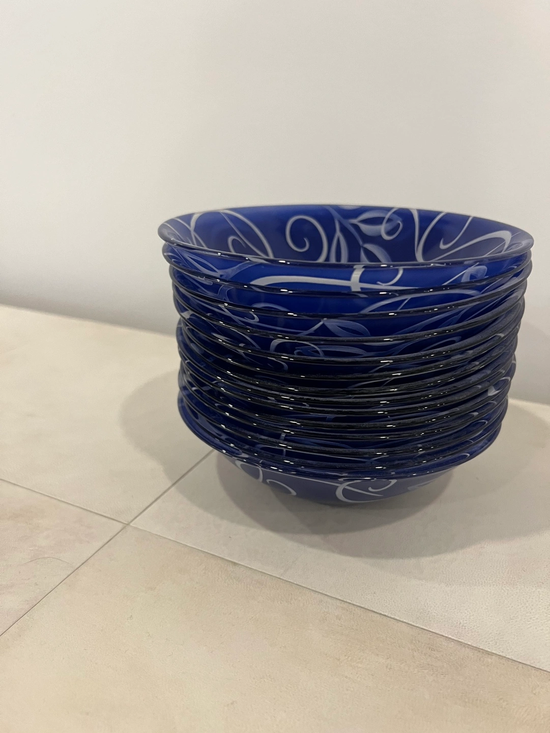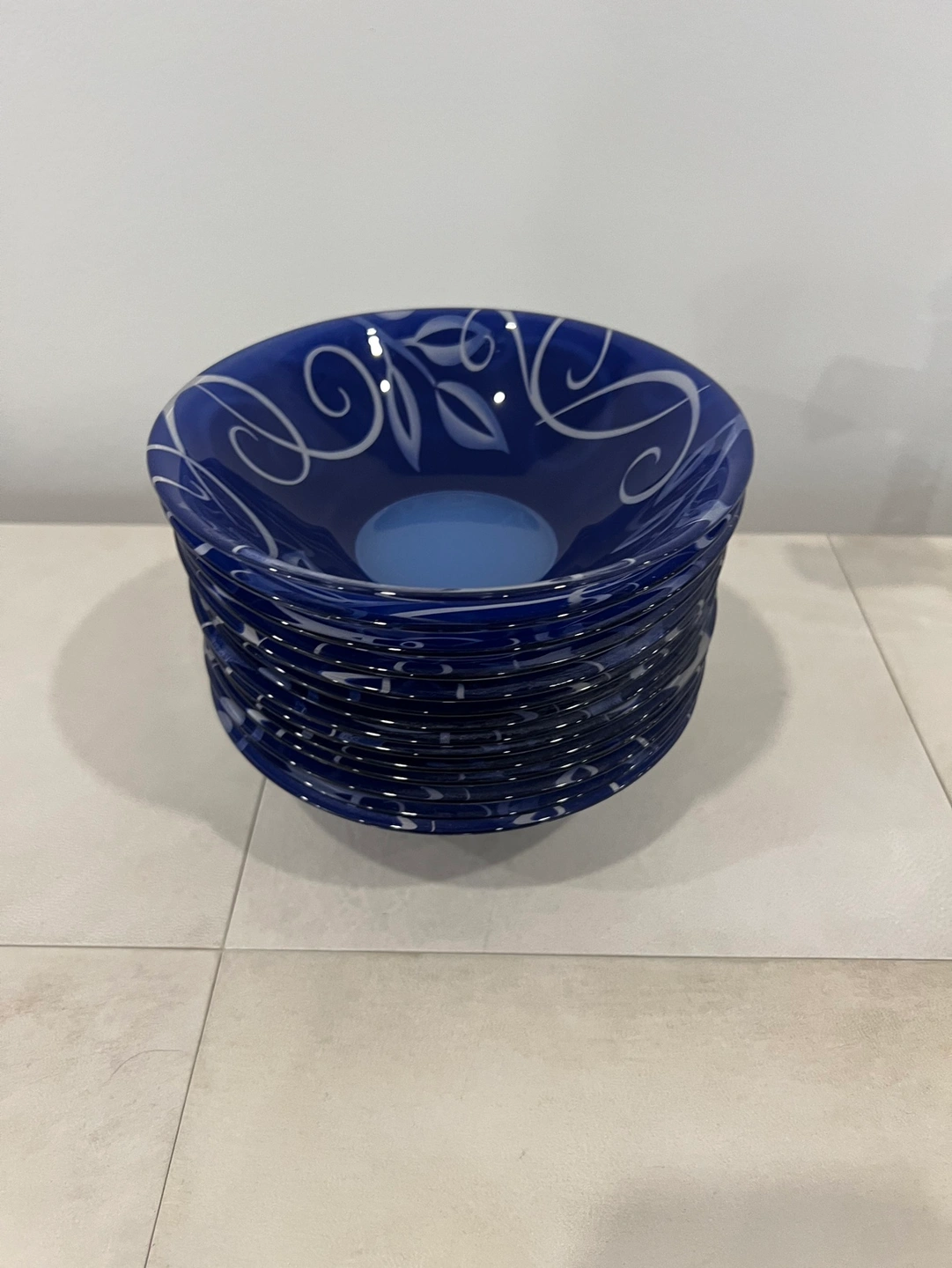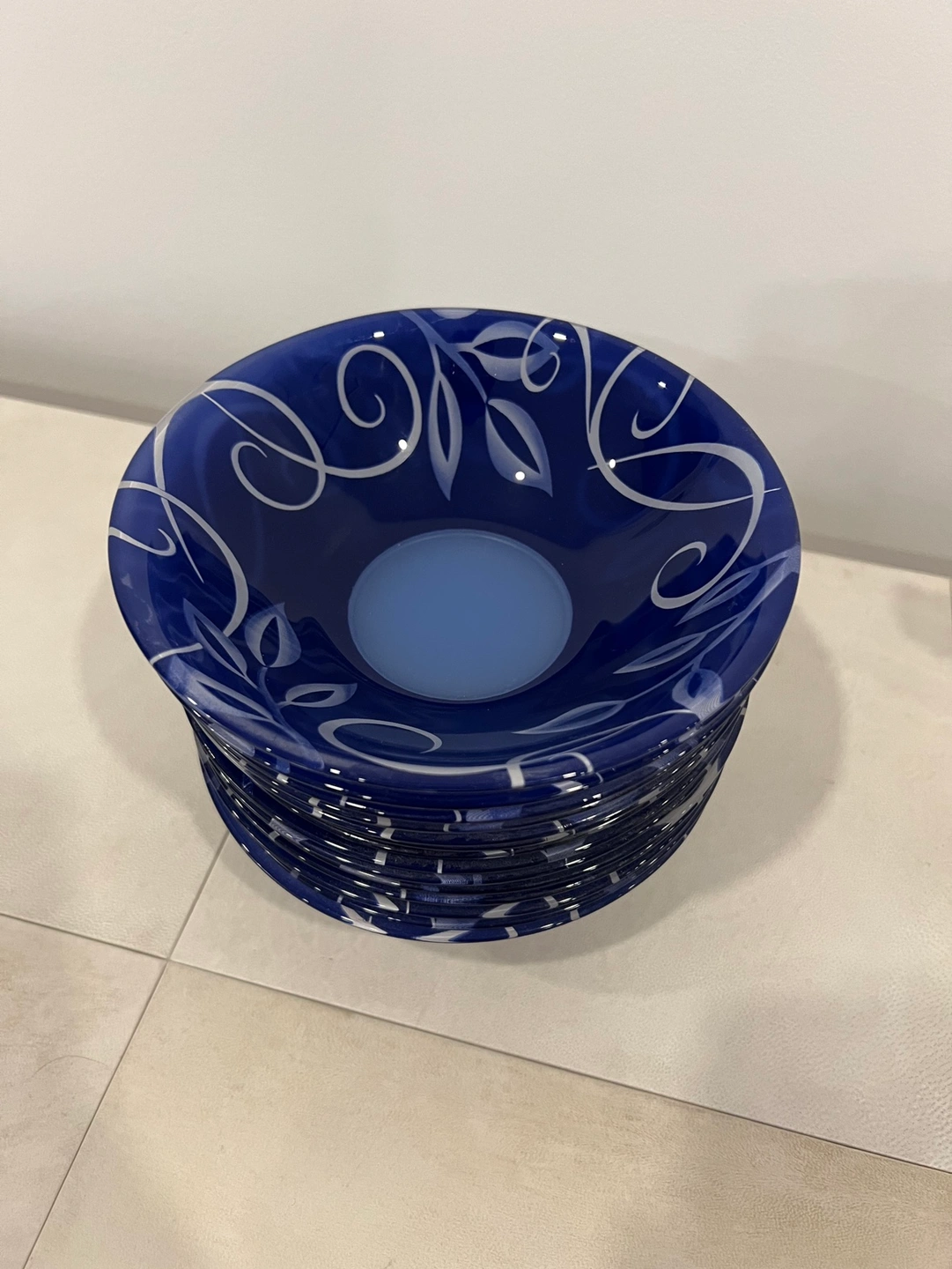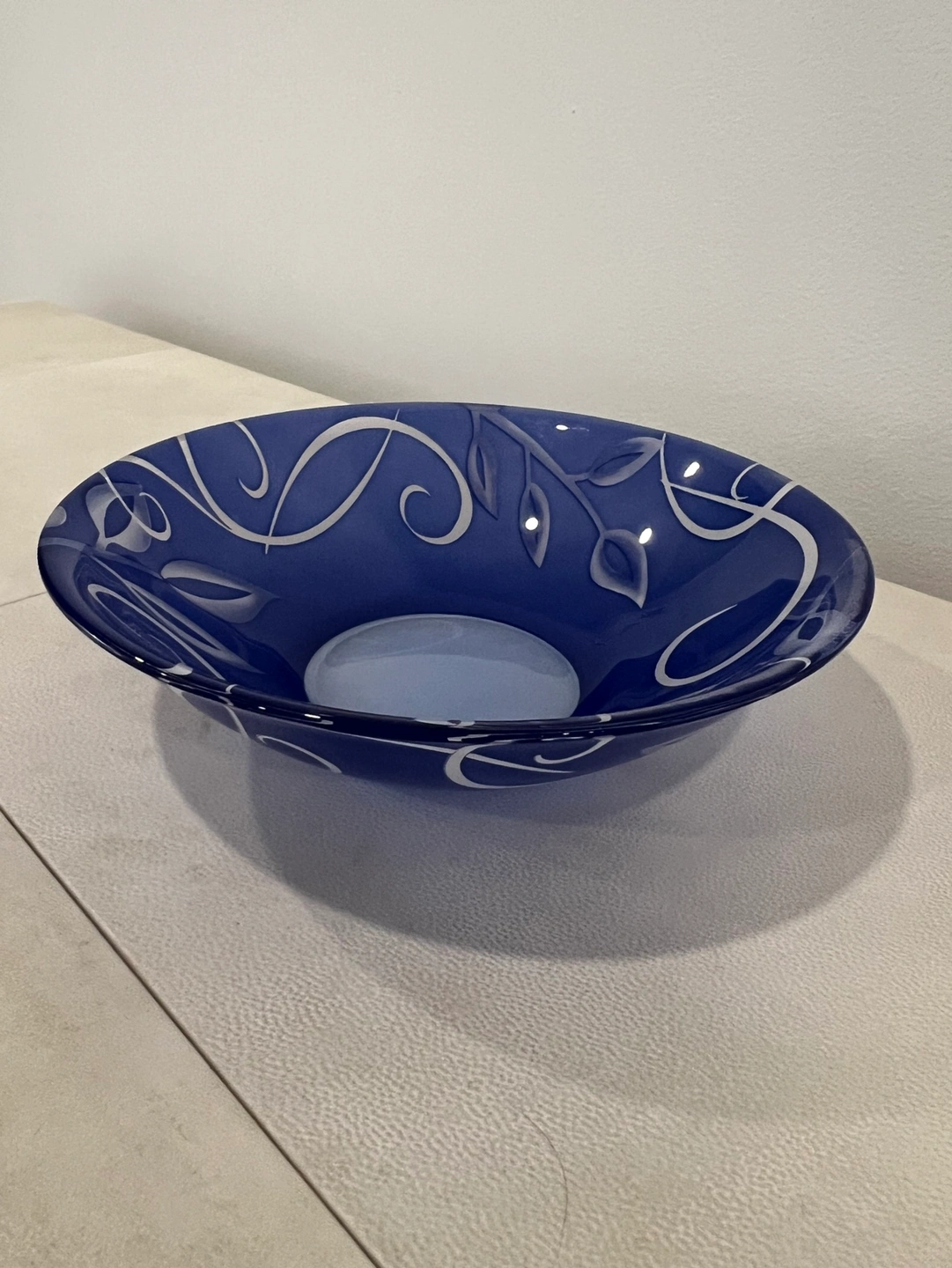 Eaton deep blue light floral leaf hand crafted bowls. These bowls are a beautiful edition to your home, they are perfect for using as a desert bowl, for soups, cereal or appetizers and will be sure to impress your guests! Also, they would make a great gift as a housewarming, wedding, or birthday!