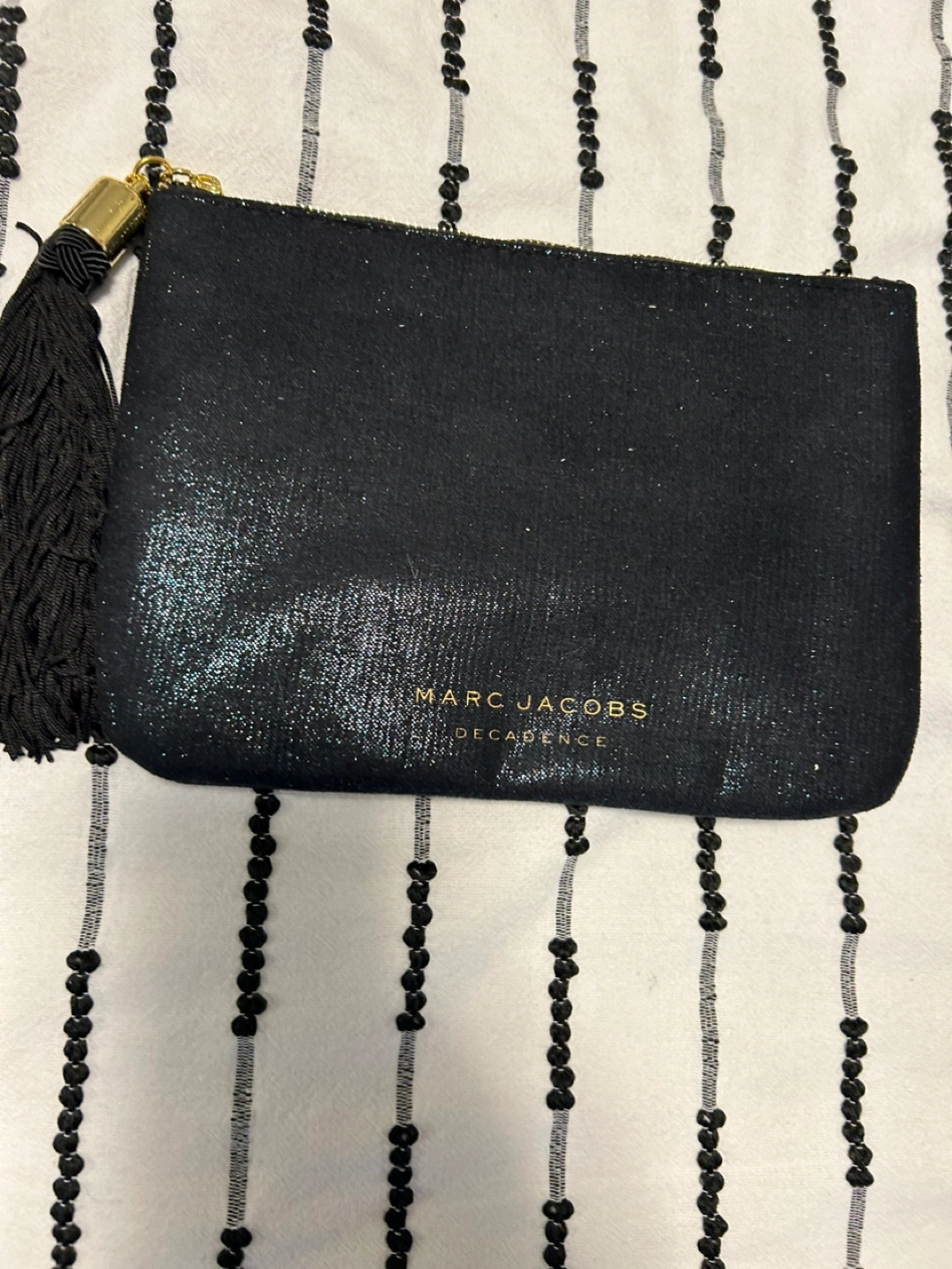 Selling a cute Marc Jacobs Decadence pouch! It's black with a tassel and gold hardware, perfect for carrying your essentials. It's in great condition and ready for a new home. I invite you to view my other items; If you are interested in any of them, I will give you a better price.