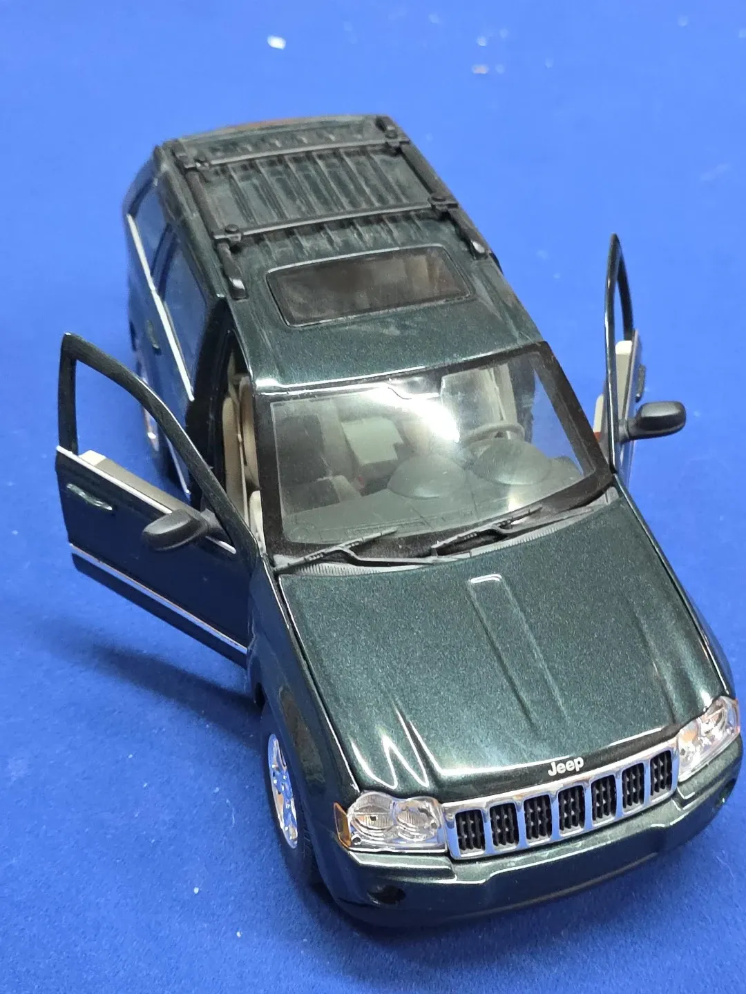 Selling a diecast model of a Jeep Grand Cherokee. It's a beautiful green colour and looks to be in great shape. Perfect for a collector or as a toy!