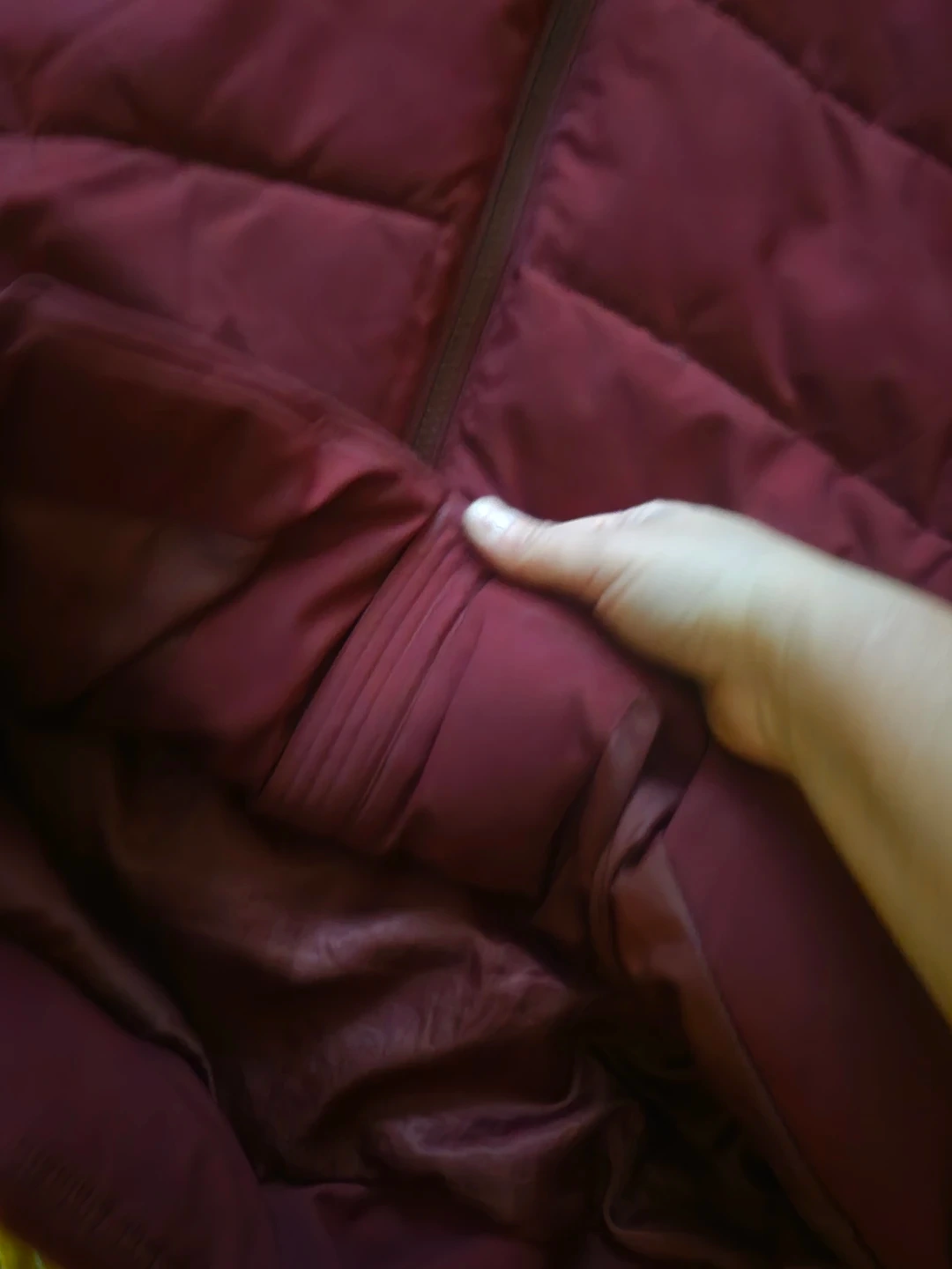 A cozy burgundy puffer coat, perfect for those chilly days! It features a full-length zipper and a hood to keep you extra warm. The coat also has convenient zippered pockets on the front. It's in great condition and ready for a new owner!