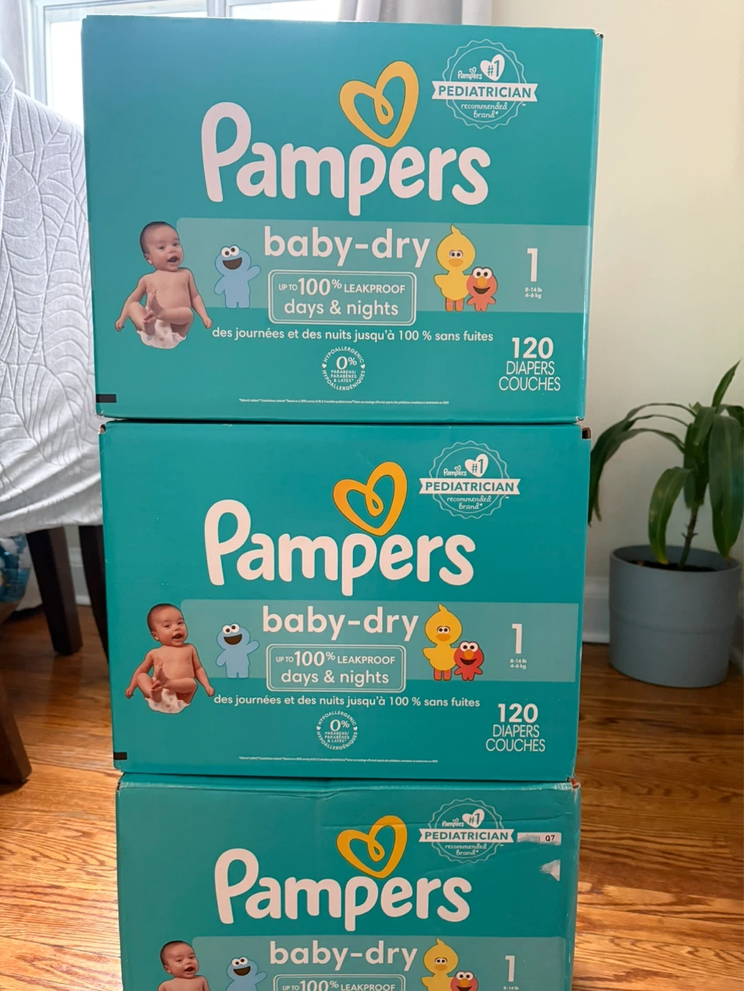 Get up to 100% leakproof days and nights with these Pampers Baby-Dry diapers. This box contains 120 diapers in size 1, suitable for babies 8-14 lbs or 4-6 kg. They're 0% parabens and allergens. A pediatrician recommended brand!