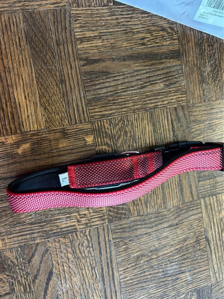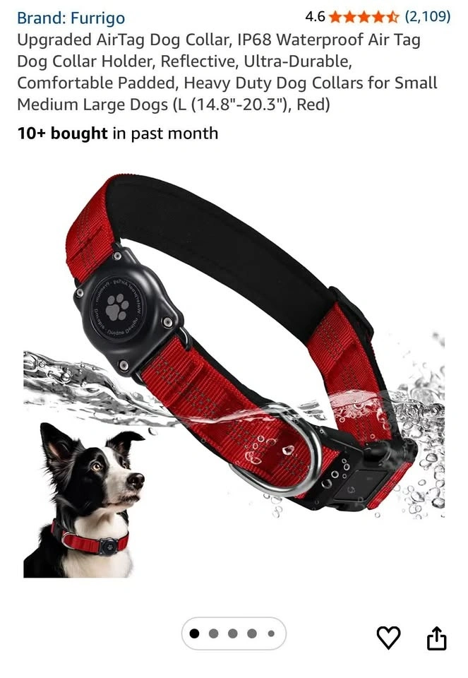 Upgraded AirTag dog collar – brand new. Fits Large dogs (14.8"–20.3"). Built-in AirTag holder (IP68 waterproof). Reflective for night visibility. Ultra-durable & padded for comfort. Heavy duty design. Colour: Red.