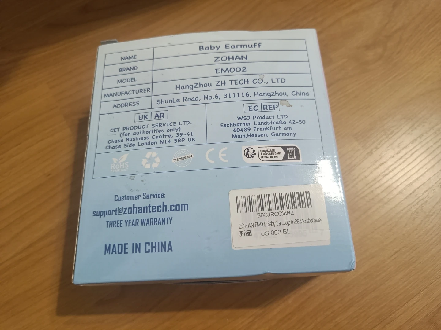 Zohan baby earmuffs with model EMO02. These are adjustable and made with comfortable materials. They're designed to protect kids' hearing and help calm emotions. Includes a soft carrying pouch. Useful for travel, races, or concerts. Suitable for ages 0-36 months.