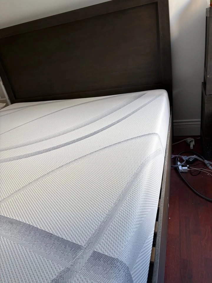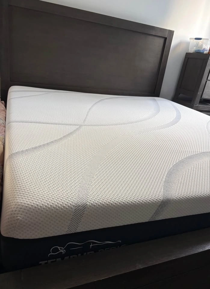 Very comfortable Tempur-Pedic king mattress and sturdy bed frame with two storage drawers. Includes two matching nightstands with drawers. Only 2 years old and in great condition. Selling because of moving.