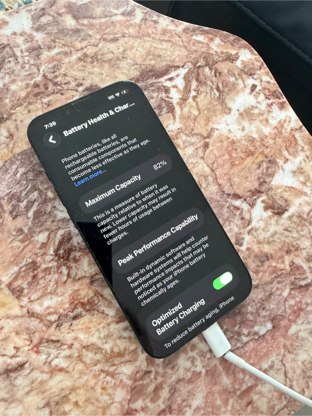This is an Apple iPhone 14 in black. It has 82% maximum battery capacity.