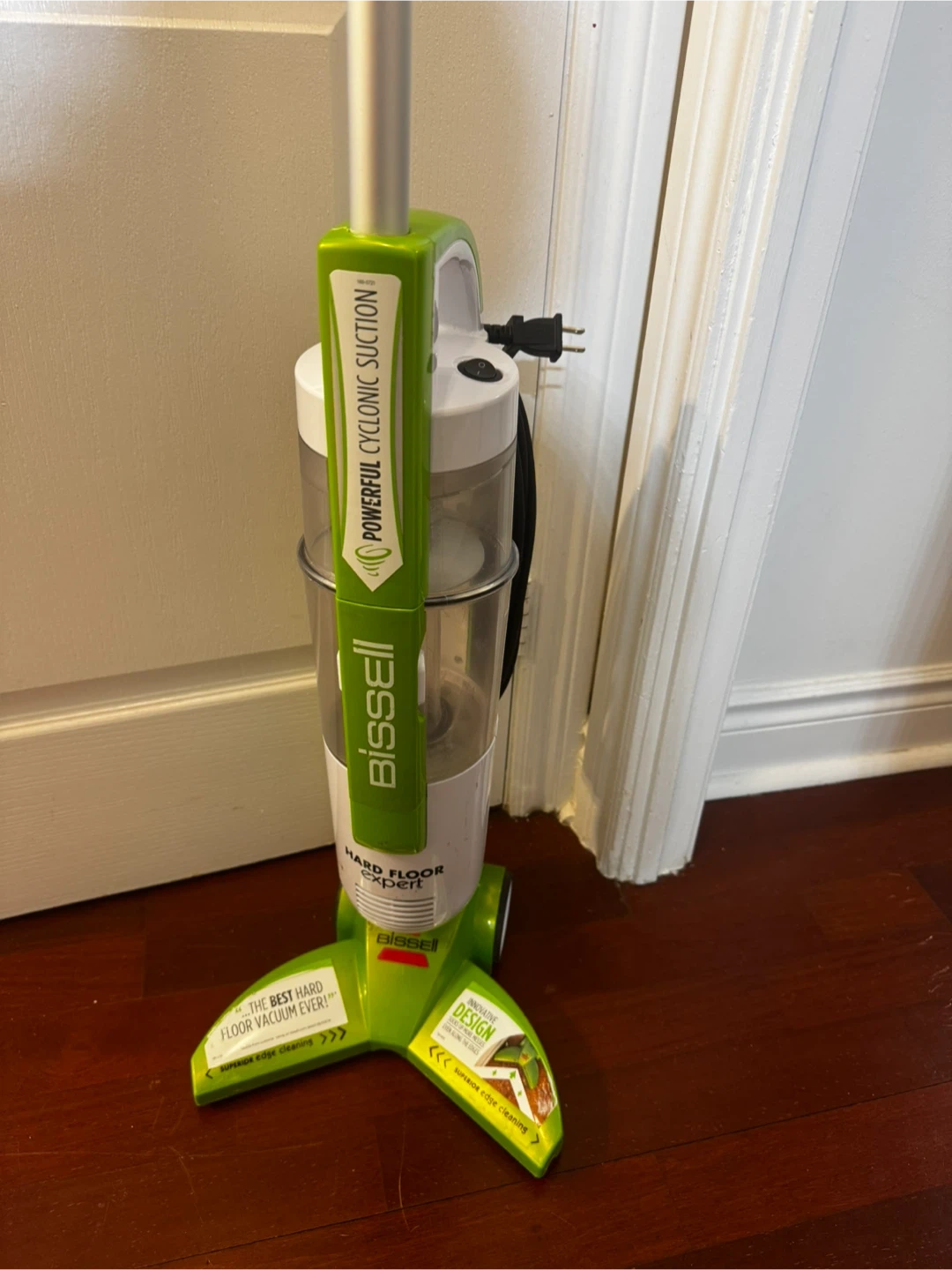 Bissell Hard Floor Expert vacuum designed for efficient cleaning on hard surfaces. It features powerful cyclonic suction and a compact design, making it easy to maneuver and store. The vacuum is in good working condition, ready to help keep your floors spotless. It's perfect for quick cleanups and maintaining the cleanliness of your home without the hassle of cords or heavy equipment. It's been well-maintained.