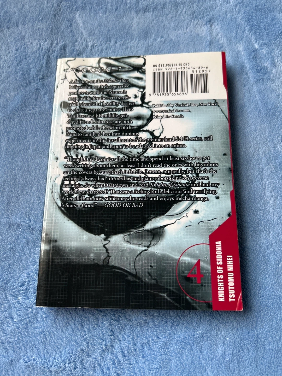 This is volume 4 of the Knights of Sidonia manga series by Tsutomu Nihei. The book is in good condition. It features a sci-fi story with mecha elements. Great for fans of action-packed manga!
