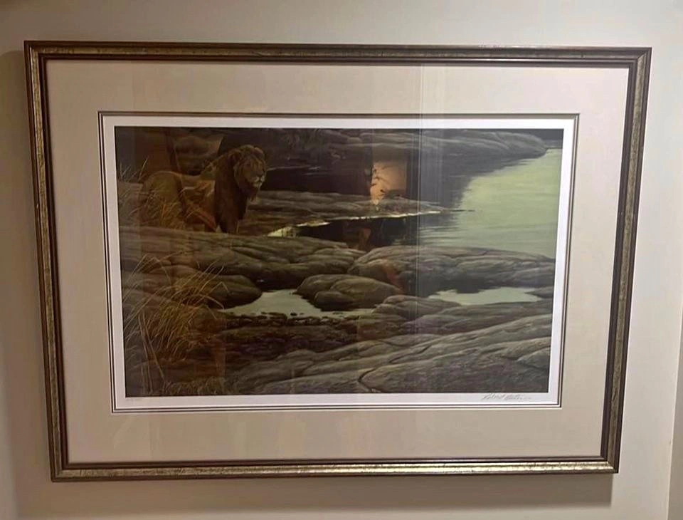 Framed Limited Edition Print by Robert Bateman Titled “Lion At Tsavo”