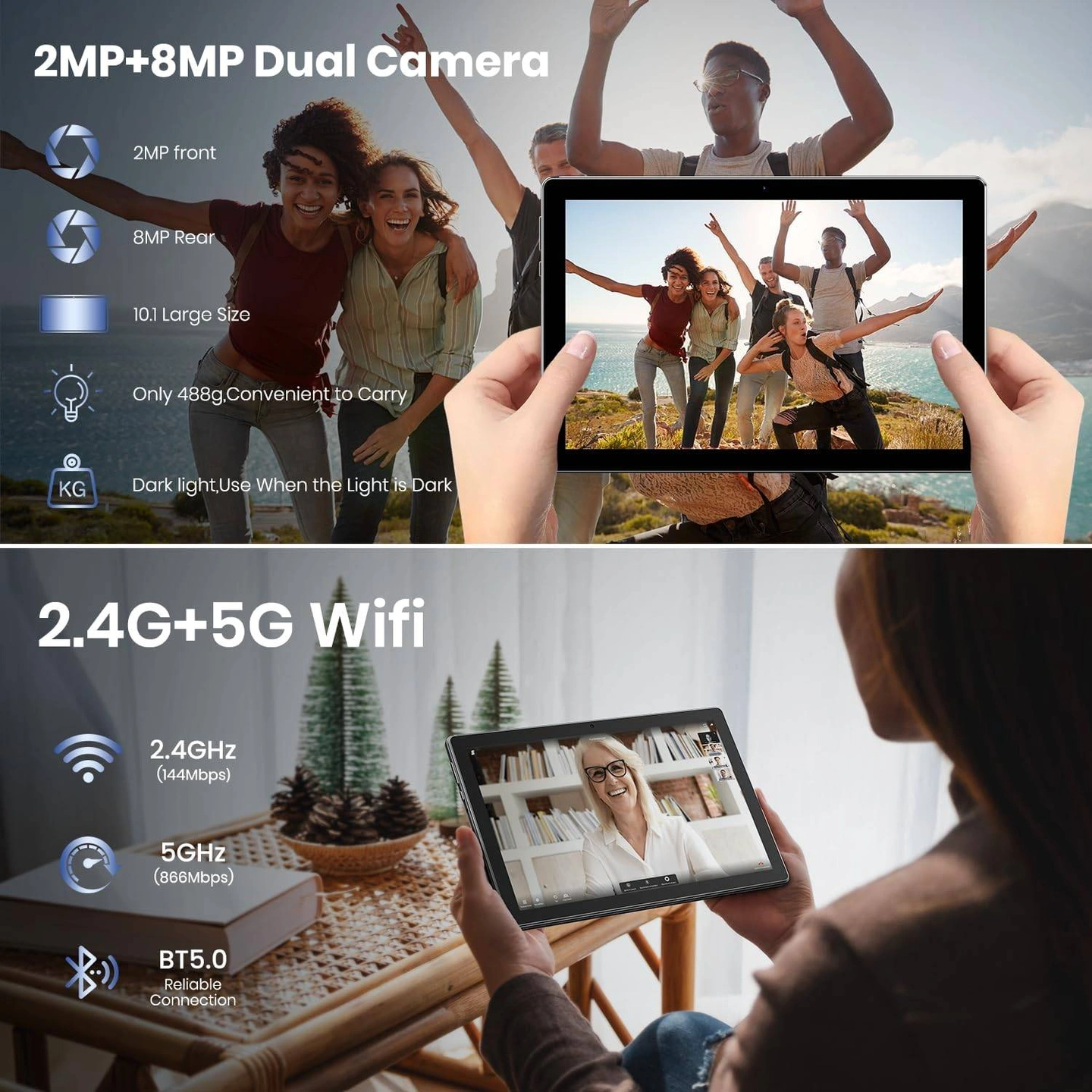 About this item: Stunning 10.1’’ HD Display & Dual Cameras Features a vibrant 10.1-inch HD LCD display (1280x800) with wide viewing angles and rich color reproduction, perfect for movies, games, and documents. Equipped with a 2MP front and 8MP rear camera for clear photos and smooth video calls, making it ideal for family connectivity and remote communication.