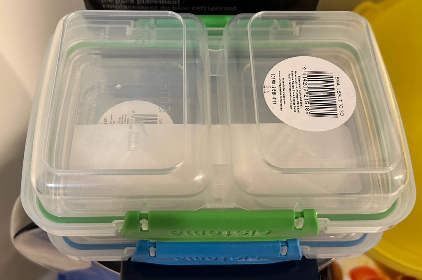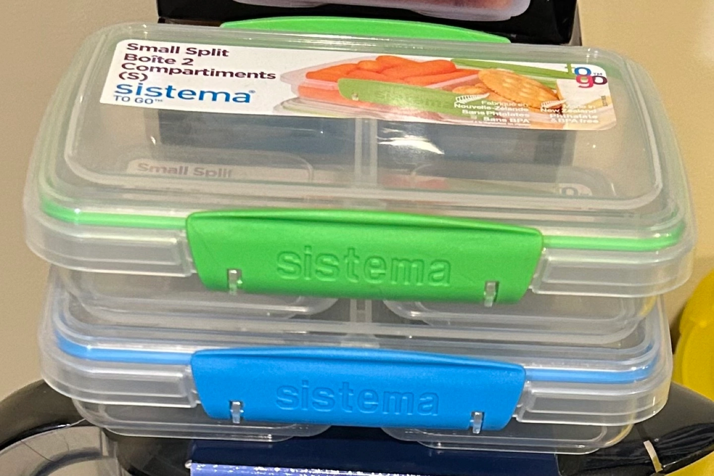 Two Sistema To Go small split containers. Each has two compartments. Green and blue latches. BPA free. Great for packing snacks. $5 for both. 😊