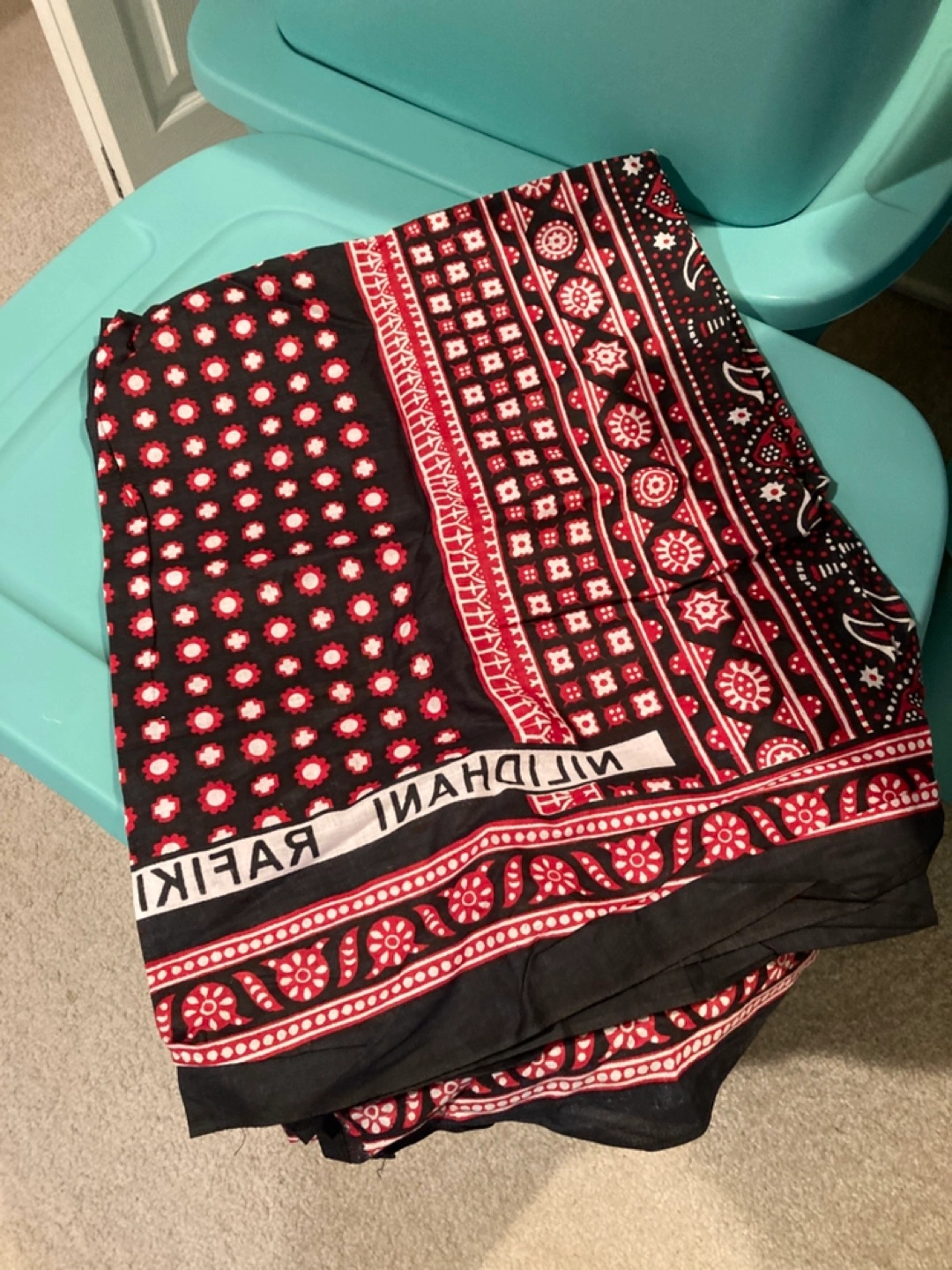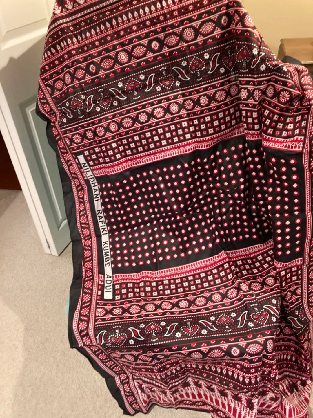 Beautiful Ajrakh block printed textile. Dark blue base with maroon and white patterns. Handcrafted. Great for a wall hanging, tablecloth, or other decorative purposes, wrap