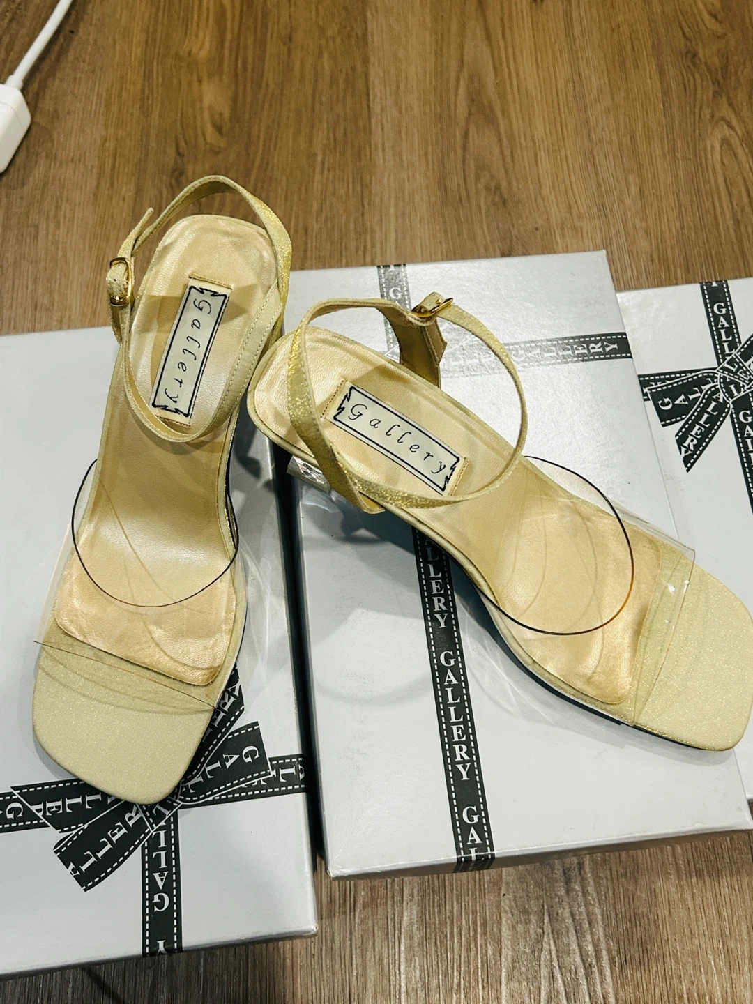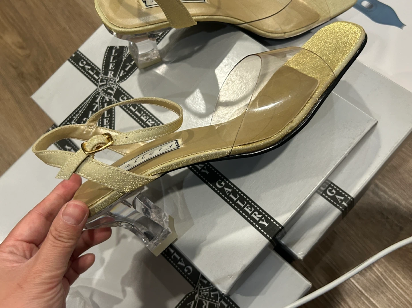 Gallery Women's Gold Clear Heel Sandals Size 7.5