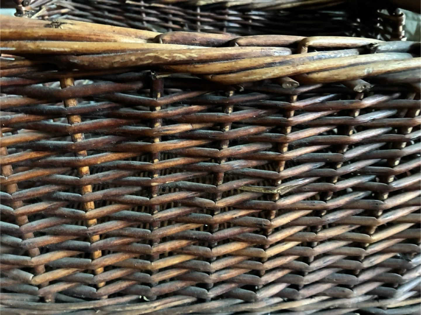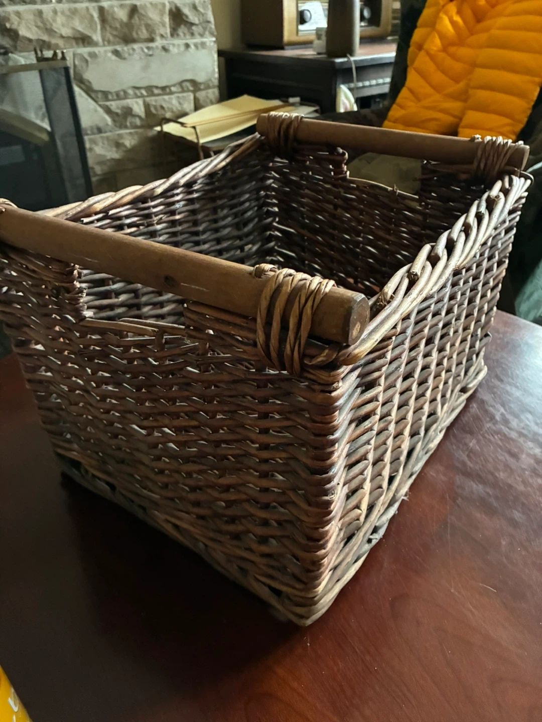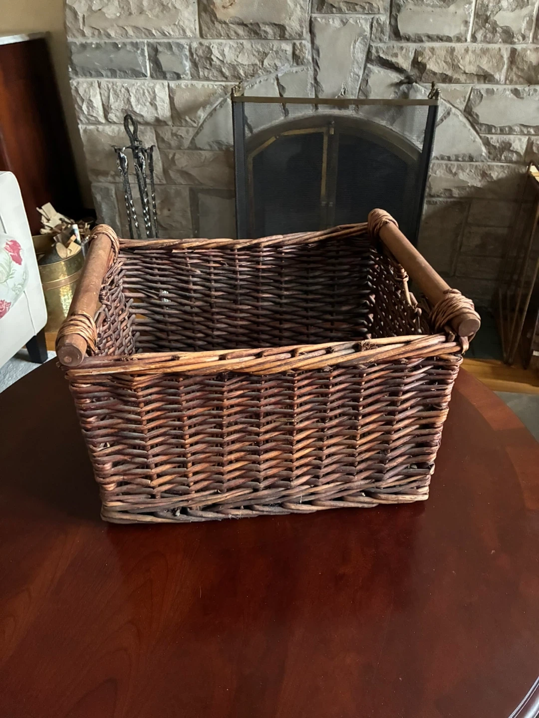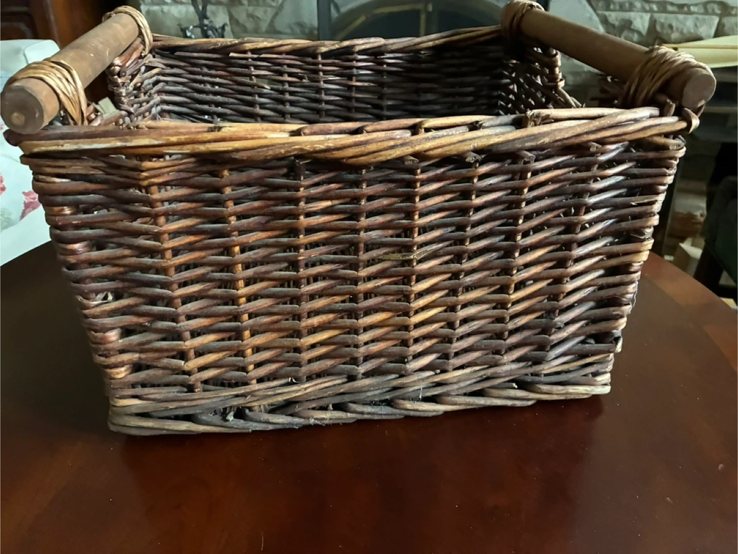 $12 Wicker Woven Storage Basket handles 10 x 12 x 16 inch firewood planter garden Donlands O'Connor