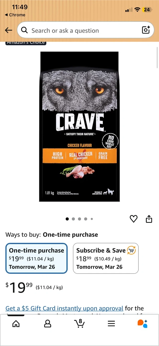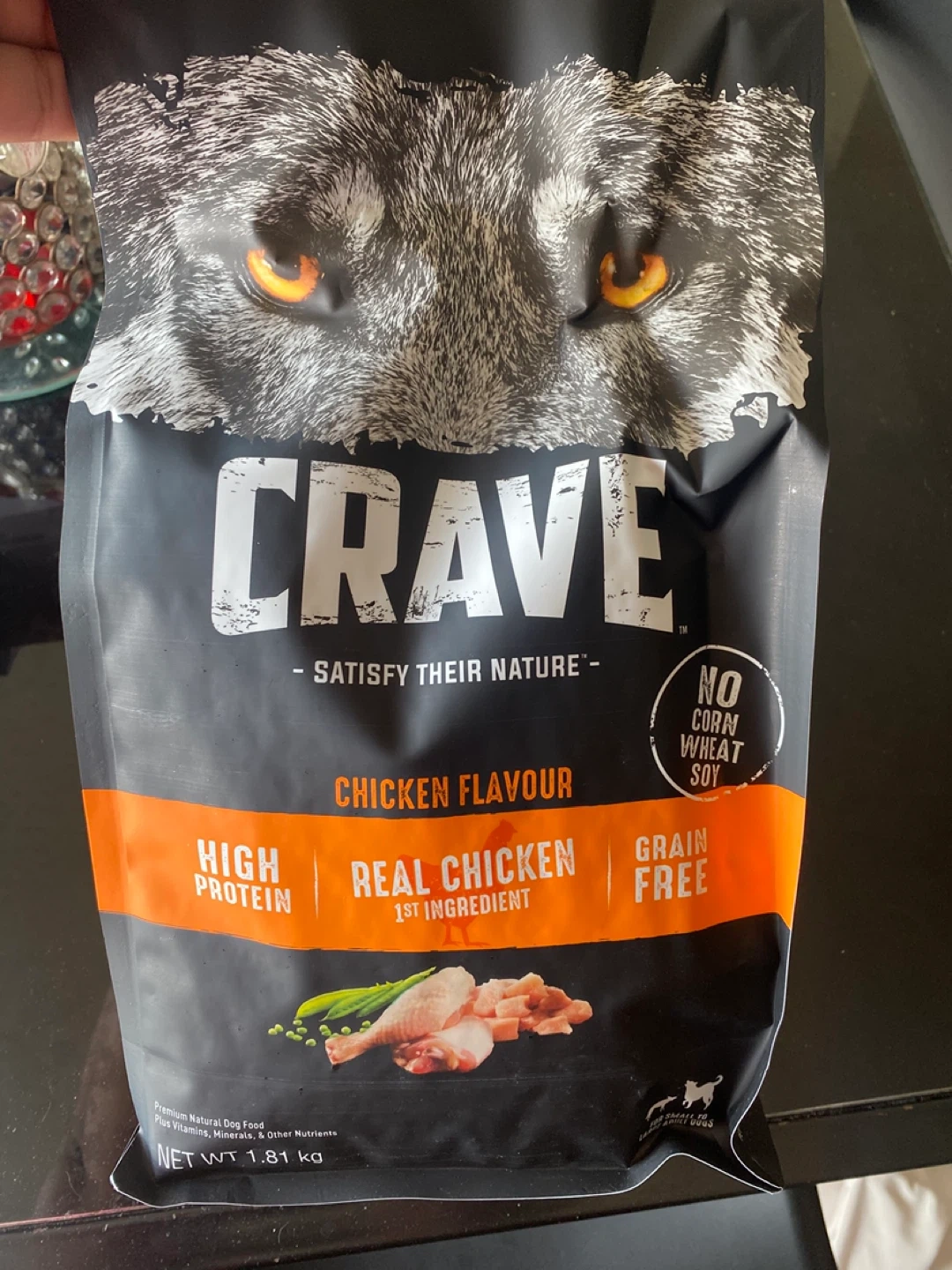 Crave Dry Dog Food in Chicken Flavour. Each bag is 1.81 kg, total 5.43 kg. High protein, real chicken, grain-free formula. Best before 16 Jun 2026.