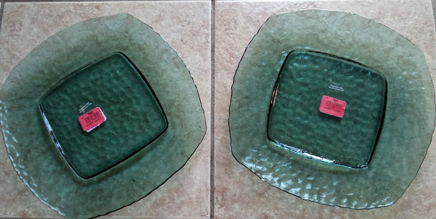 NEW Pier 1 Green Glass Plates x2