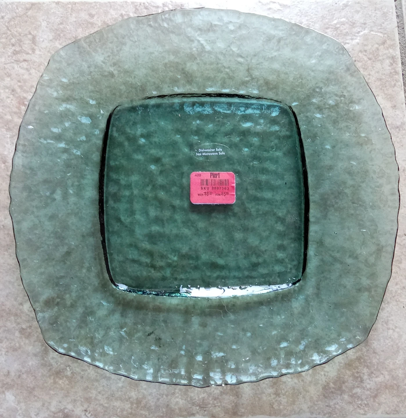 Selling a set of Pier 1 green glass plates. They are dishwasher safe and in great condition. These plates were originally $9.95 each