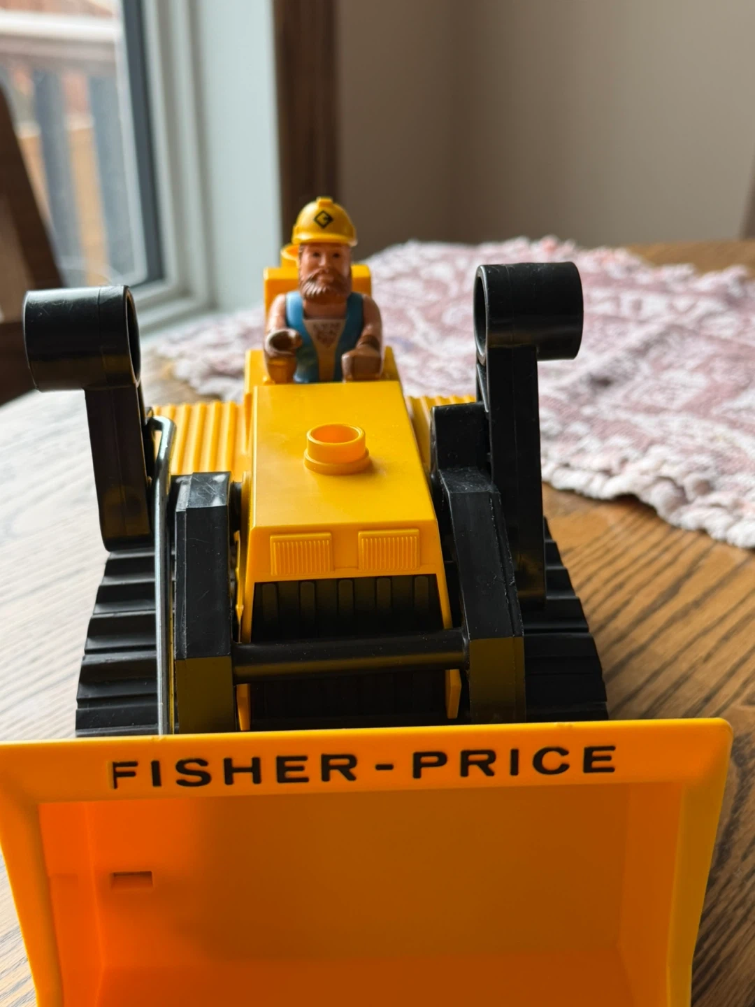 This is a vintage 1980’s Fisher-Price Big Loader construction toy. It features a working bucket and a figure driver. Made of durable plastic for lots of play time!