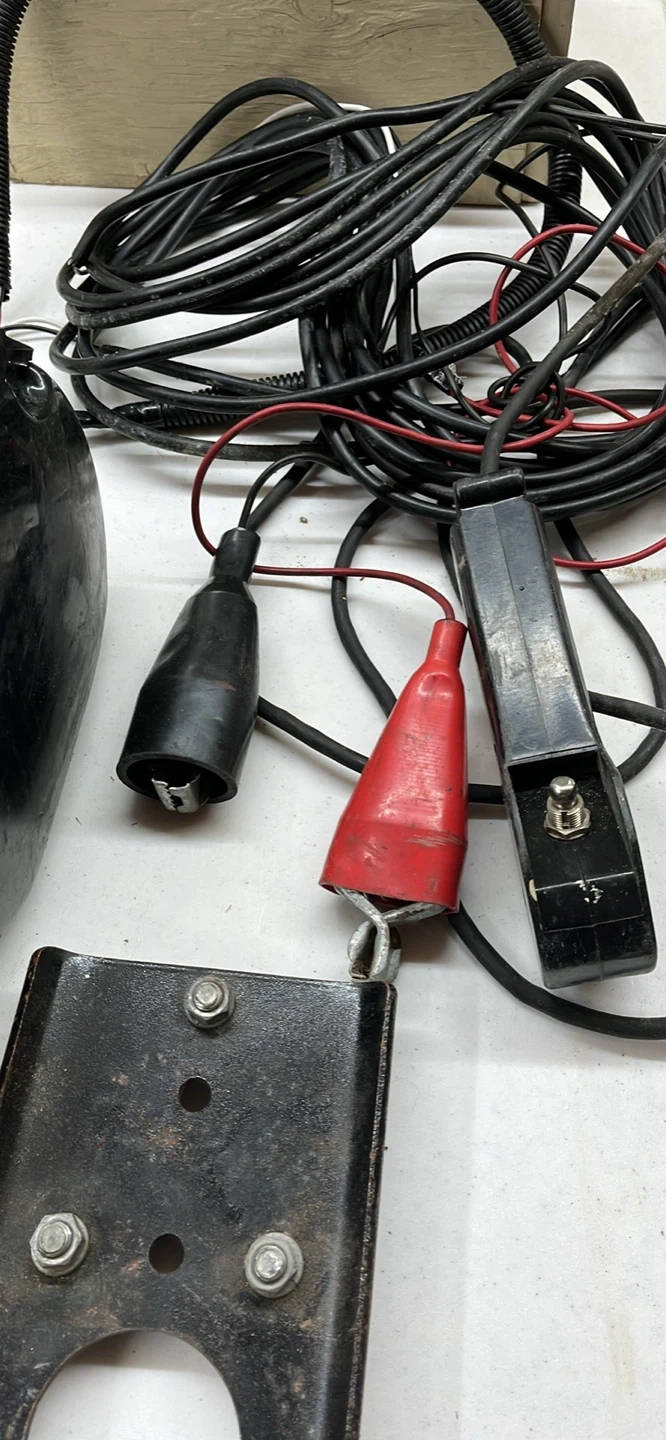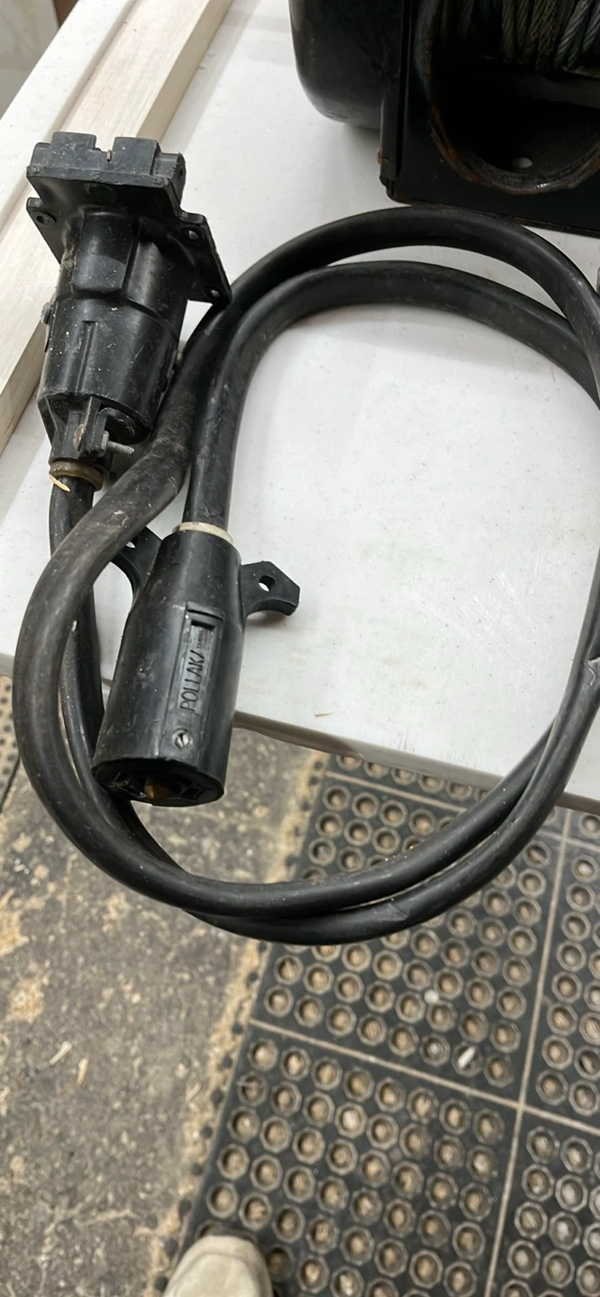 This is a 12-volt DC heavy-duty automotive winch. It has a rolling load capacity of 6,000 lbs. Includes mounting bracket and cables with battery clips.