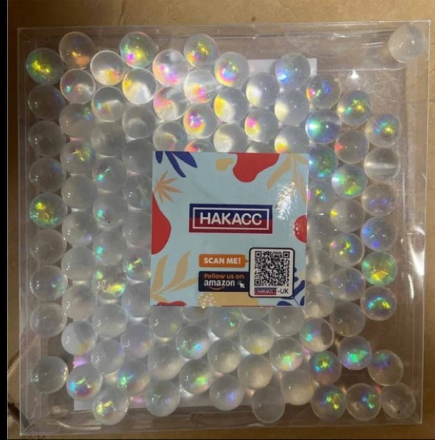These are factory-sealed Hakacc brand acrylic round balls, perfect for various decorative or craft purposes; these balls have a slight iridescent finish. This set is new and sealed.