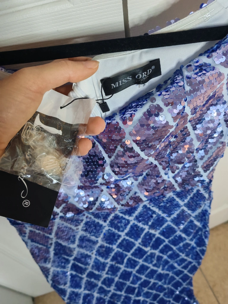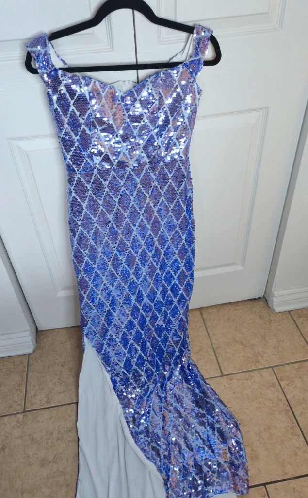 Blue Sequin Split Mermaid Dress Size S