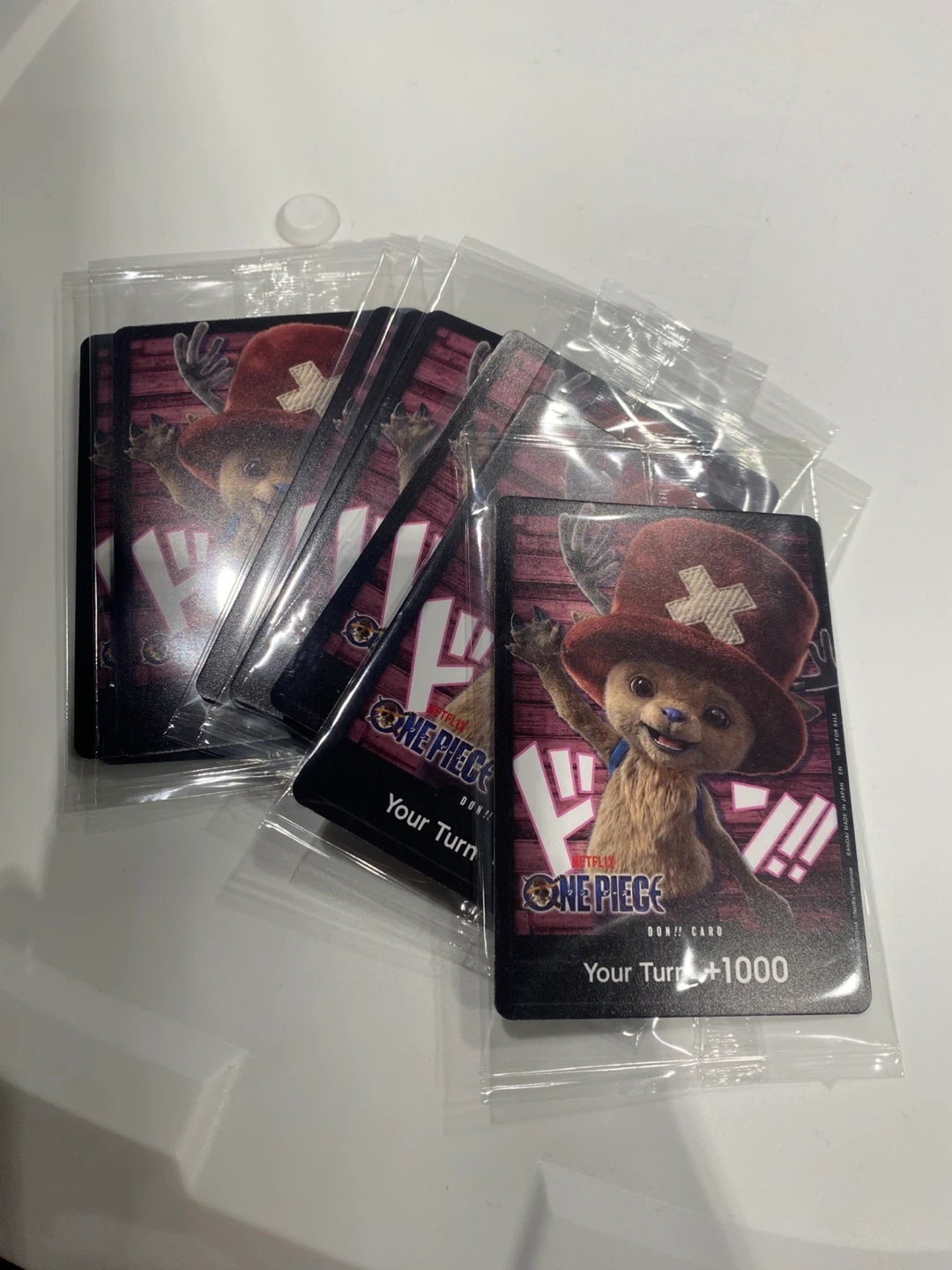 No trades. Set of 9 collectible DON!! cards featuring Chopper from the One Piece Netflix live-action series. Each card is individually sleeved. Great for fans and collectors!