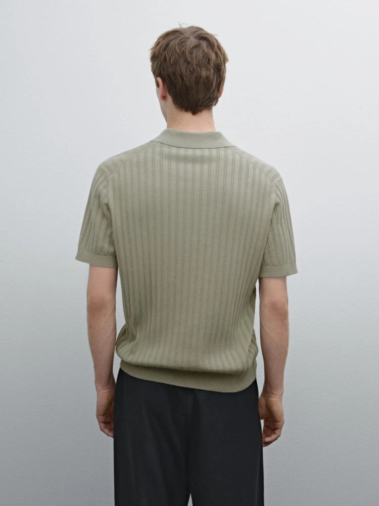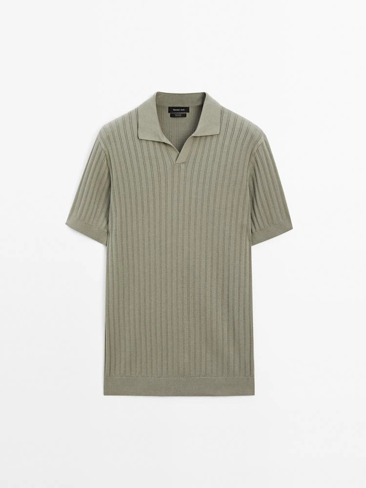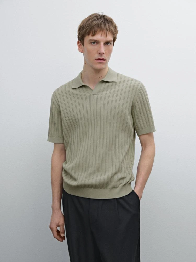 Men's Massimo Dutti Sage Green Knitted Johnny Polo Shirt