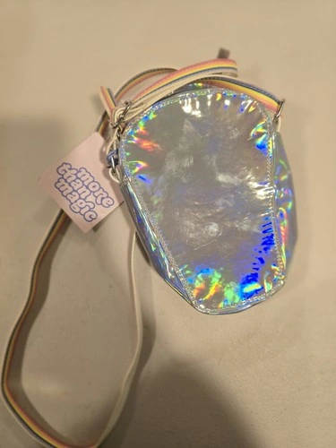 This More Than Magic Rainbow Cat Shoulder Bag Purse is a fun and stylish accessory perfect for kids who love cats and rainbows. Made from faux leather with glitter accents, this crossbody bag in silver features a cute cat design that will brighten up any outfit. The bag is versatile for both boys and girls and is sure to add a touch of magic to their everyday look. Perfect for carrying small items like snacks, toys, or a phone while on the go.